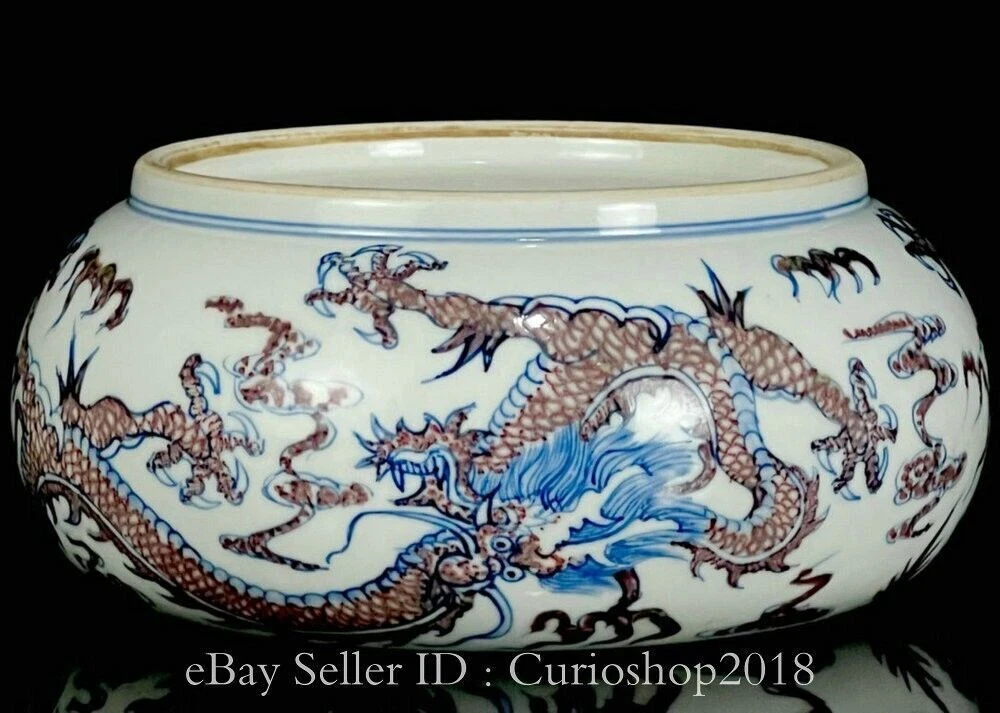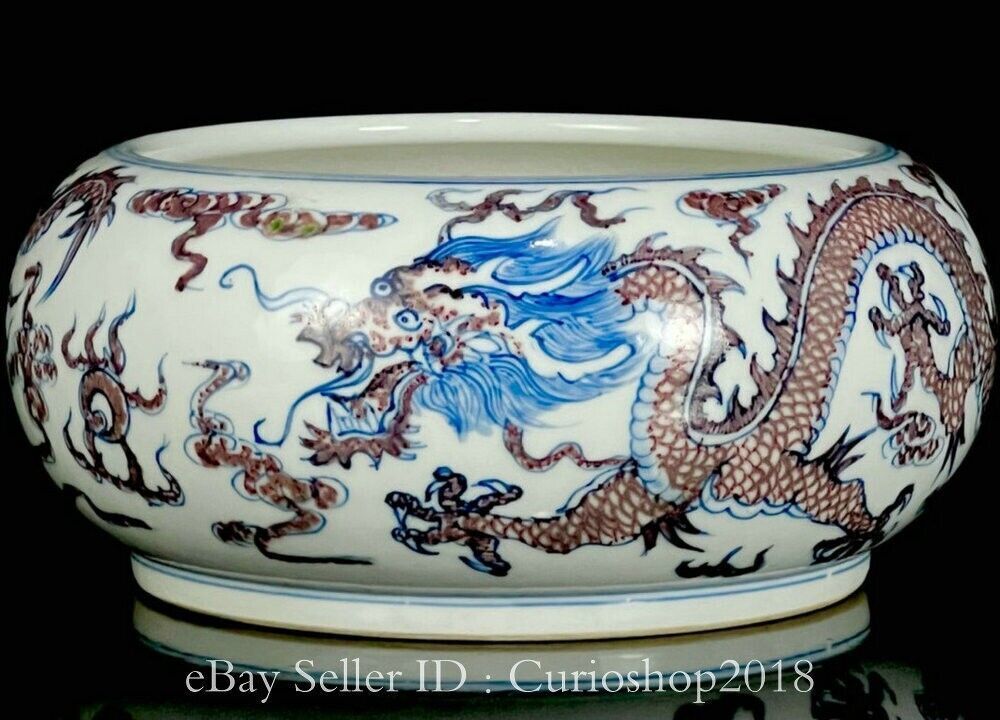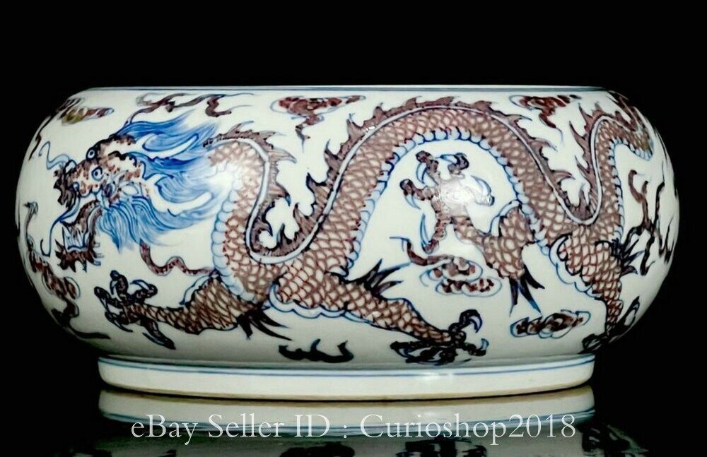 $ 204.876.2 Inch Antique Chinese Red Glaze Feng Shui Dragon Ceramic Bowl