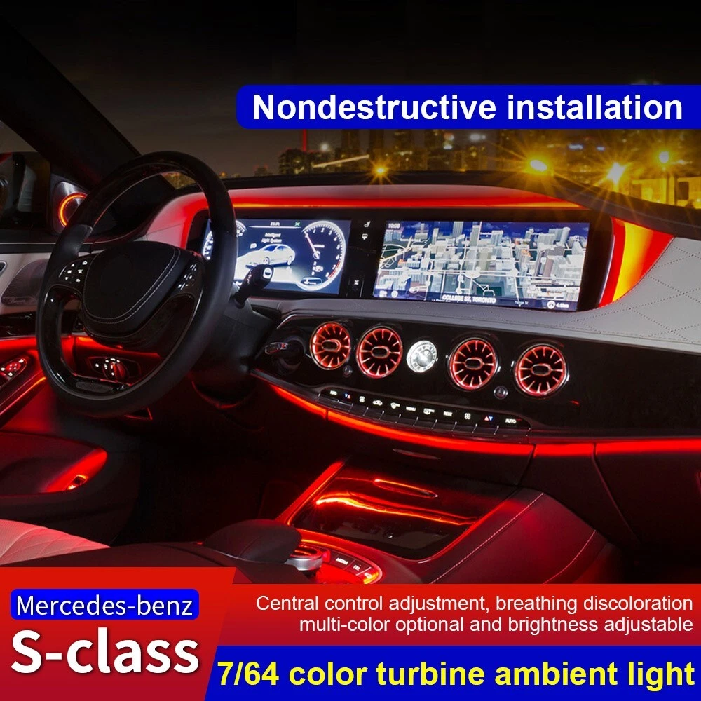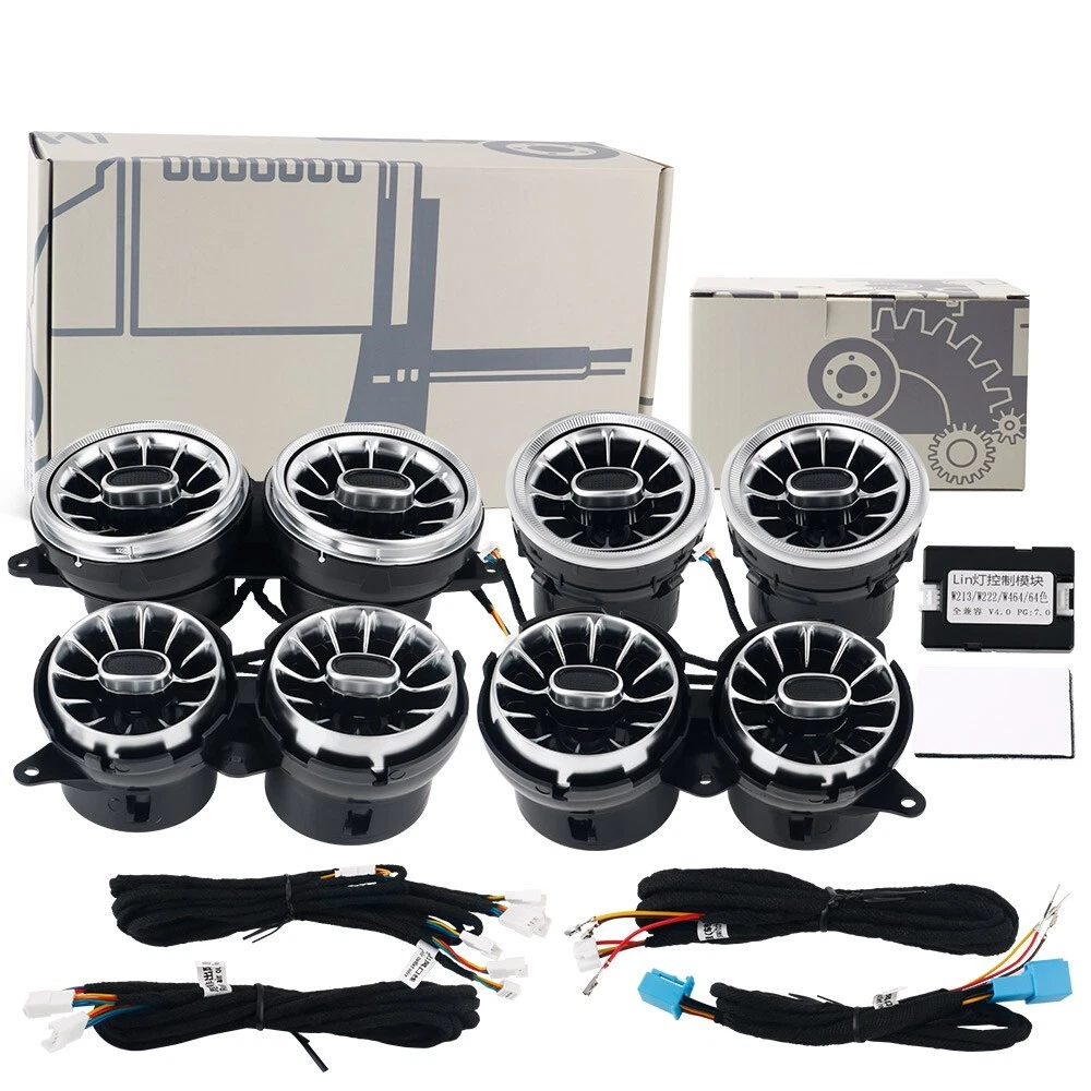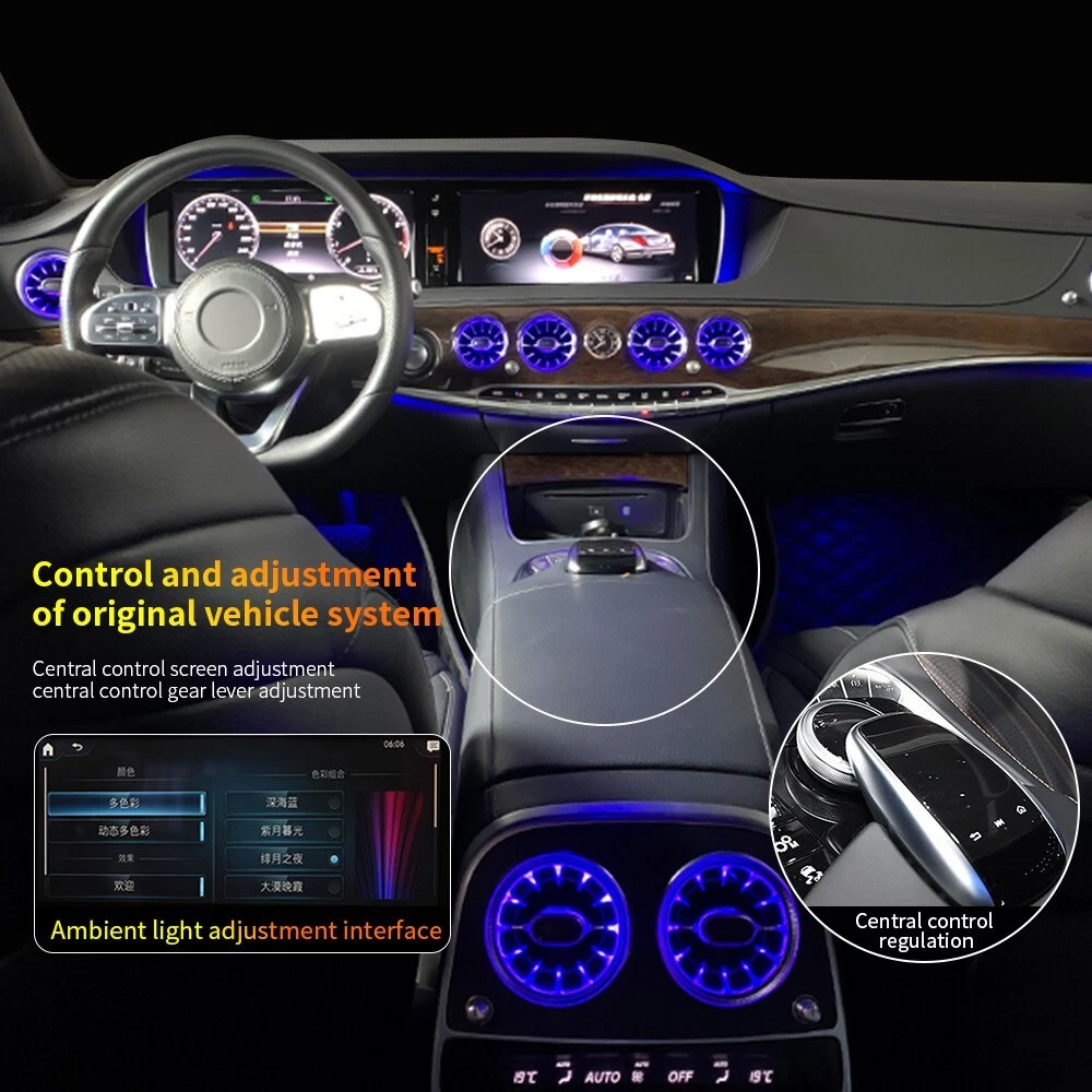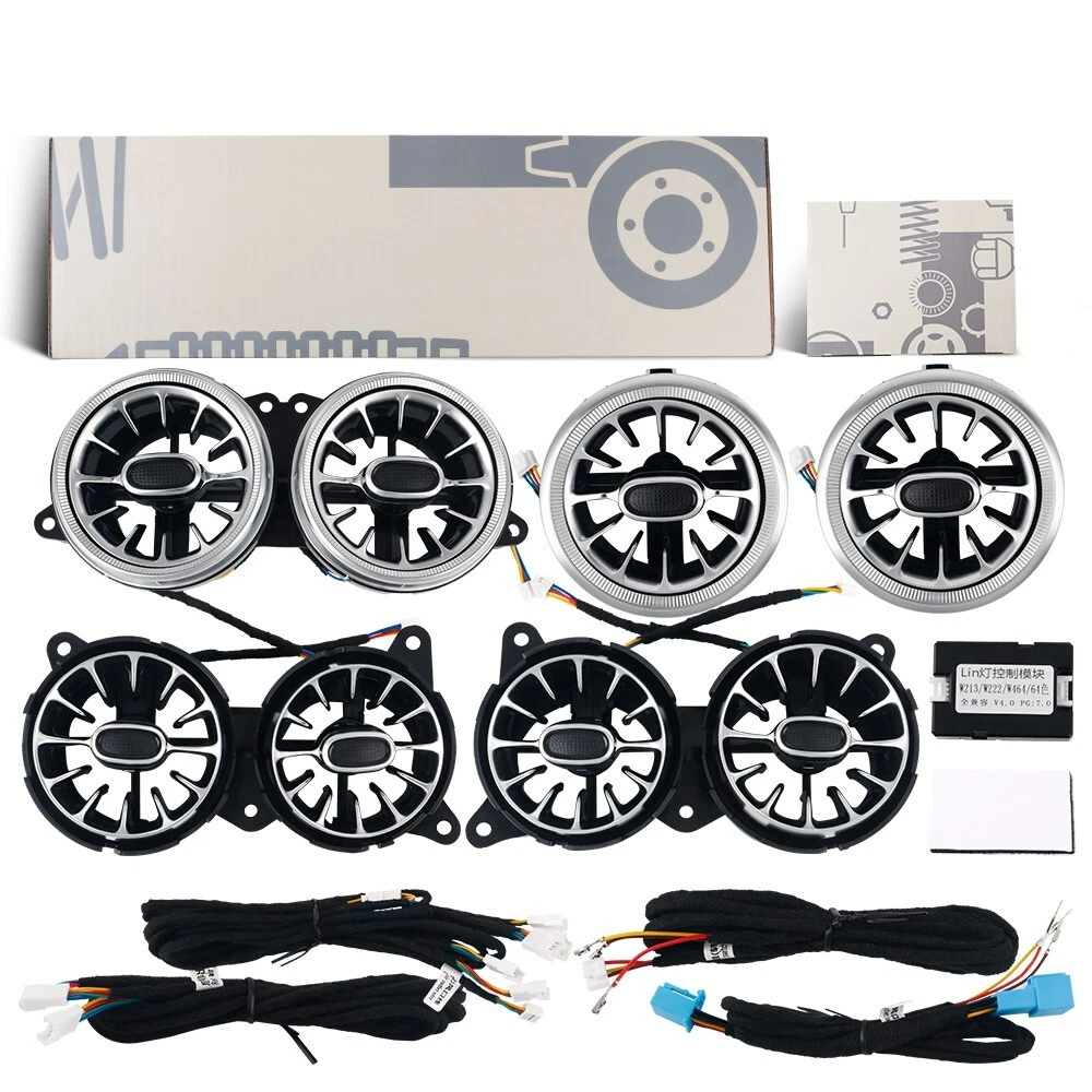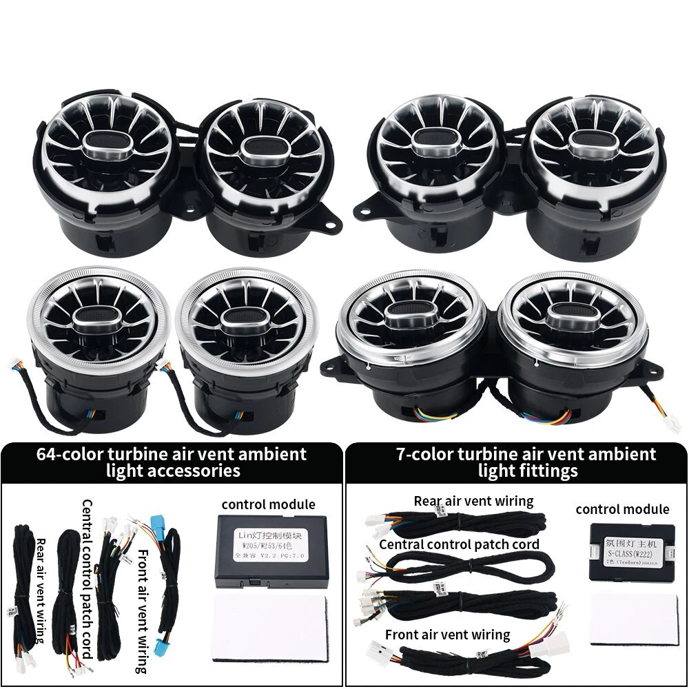 Features: 100% Brand New in Box W222 8PCS/Set 7/64 Colors NEW Version High Quality Plug and Play Interior Front and Rear Dashboard Air Vent with Ambient Light 1:1 Replacement; NO Modification Required Fitment: For Mercedes Benz S-Class W222 2017 2018 2019 2020 2021( 7/ 64 Colors ) - OEM design, fit original air vent position perfectly - Light color is synchronized with original ambient light - Light color and brightness can be controlled by original Command knob Package included: 8 PCS/Set Front and Rear Air Vents with Ambient Light NOTE: NOT Including Installation Guide or Manual. Professional installation is highly recommended .