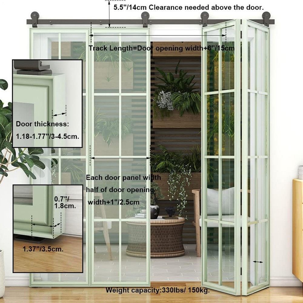 76in Black Bifold Sliding Door Track,Sliding barn door hardware kit,Brand New Space-Saving Safety: Improve your home's elegance with our Barn Door Hardware that provides a safe and secure design for children, making it ideal for a wide range of applications including home and business. Its folding feature adds functionality and saves ample space. Long-Lasting Performance: Featuring wear-resistant nylon wheels rollers and robust carbon steel, our barn door hardware promises long-lasting strength and a smooth sliding motion. Intuitive Installation: Our barn door hardware kit ensures easy and seamless installation with a comprehensive setup guide that includes intuitive pictures and text. The total width guide and detailed instructions save you time, making installation a breeze. Versatile Touch: Provide a unique touch to your barn door with our hardware set. All accessories included to fit 35mm-45mm door thickness, catering to diverse installation preferences. Door not included; perfect fit assured. Improve Home Decor: Improve your home decor with our Barn Door Hardware. Enjoy noise-free sliding in living rooms, bedrooms, and dining areas for a cozy and rustic ambiance. The study and durable hardware ensures notable load-bearing capacity for all your needs. Upgrade your bedrooms and save time bestly with our excellent carbon steel sliding door hardware. This complete set includes everything you need to transform any room into a stunning and functional space. Enjoy effortless gliding with no hiccups for years. Specification: Name: Barn Door Hardware Colour: Black Material: Carbon steel Track Size: about 76 inches/193cm Track Splicing Method: 5 pieces Scope of Application: Door panel thickness 0.5-50mm Packing List: 5* FT Track 4* Roller 4* Roller Swivel Stand 2* Roller Holder 6* Hinge 2* Ground Guide Fixings 2* Sealing Strip 1* Screw Pack 1* Instruction Manual 6* Pipe Clamp 35mm 6* Wood Screws M8*90 Notes: 1. Due to the different monitor and light effects, the actual color of the item might be slightly different from the color which is showed in the pictures. 2. Please forgive a slight measuring deviation due to manual measurement. 3. Door is not included. We accept PayPal payment,PayPal Credit,Credit card or debit card and so on. Payment should be completed within 4 (Four) days of auction closing. Or unpaid dispute will be filed for closing auction. We will leave a positive feedback immediately after payment is received. We appreciate a positive feedback as much as you do. If for some reason there is any issue with the purchase, please contact us prior to leaving feedback, we will be glad to work together and provide a satisfying solution. · Welcome to our eBay store. As a leading and emerging company in manufacturer and exporting business, we are specialized in Business and Industrial Products, Sporting Goods, Pet Products, Home and Garden products for more than 10 years. We believe that it is our vision and mission to provide innovative products with best service and competitive price to satisfy you. Our goal is to make sure that you can find exactly what you are looking for and make it easy for you to place your orders. · Email Customer Support: · 9:00am-2:00am PST Sunday-Friday All emails will be responded to within 12-24 hours