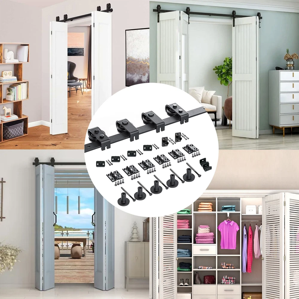 76in Bifold Sliding Door Track,Sliding barn door hardware kit,Black,Brand New- Space-Saving Safety: Improve your home's elegance with our Barn Door Hardware that provides a safe and secure design for children, making it ideal for a wide range of applications including home and business. Its folding feature adds functionality and saves ample space. Long-Lasting Performance: Featuring wear-resistant nylon wheels rollers and robust carbon steel, our barn door hardware promises long-lasting strength and a smooth sliding motion. Intuitive Installation: Our barn door hardware kit ensures easy and seamless installation with a comprehensive setup guide that includes intuitive pictures and text. The total width guide and detailed instructions save you time, making installation a breeze. Versatile Touch: Provide a unique touch to your barn door with our hardware set. All accessories included to fit 35mm-45mm door thickness, catering to diverse installation preferences. Door not included; perfect fit assured. Improve Home Decor: Improve your home decor with our Barn Door Hardware. Enjoy noise-free sliding in living rooms, bedrooms, and dining areas for a cozy and rustic ambiance. The study and durable hardware ensures notable load-bearing capacity for all your needs. Upgrade your bedrooms and save time bestly with our excellent carbon steel sliding door hardware. This complete set includes everything you need to transform any room into a stunning and functional space. Enjoy effortless gliding with no hiccups for years. Specification: Name: Barn Door Hardware Colour: Black Material: Carbon steel Track Size: about 76 inches/193cm Track Splicing Method: 5 pieces Scope of Application: Door panel thickness 0.5-50mm Packing List: 5* FT Track 4* Roller 4* Roller Swivel Stand 2* Roller Holder 6* Hinge 2* Ground Guide Fixings 2* Sealing Strip 1* Screw Pack 1* Instruction Manual 6* Pipe Clamp 35mm 6* Wood Screws M8*90 Notes: 1. Due to the different monitor and light effects, the actual color of the item might be slightly different from the color which is showed in the pictures. 2. Please forgive a slight measuring deviation due to manual measurement. 3. Door is not included. We accept PayPal payment,PayPal Credit,Credit card or debit card and so on. Payment should be completed within 4 (Four) days of auction closing. Or unpaid dispute will be filed for closing auction. We will leave a positive feedback immediately after payment is received. We appreciate a positive feedback as much as you do. If for some reason there is any issue with the purchase, please contact us prior to leaving feedback, we will be glad to work together and provide a satisfying solution. · Welcome to our eBay store. As a leading and emerging company in manufacturer and exporting business, we are specialized in Business and Industrial Products, Sporting Goods, Pet Products, Home and Garden products for more than 10 years. We believe that it is our vision and mission to provide innovative products with best service and competitive price to satisfy you. Our goal is to make sure that you can find exactly what you are looking for and make it easy for you to place your orders. · Email Customer Support: · 9:00am-2:00am PST Sunday-Friday All emails will be responded to within 12-24 hours