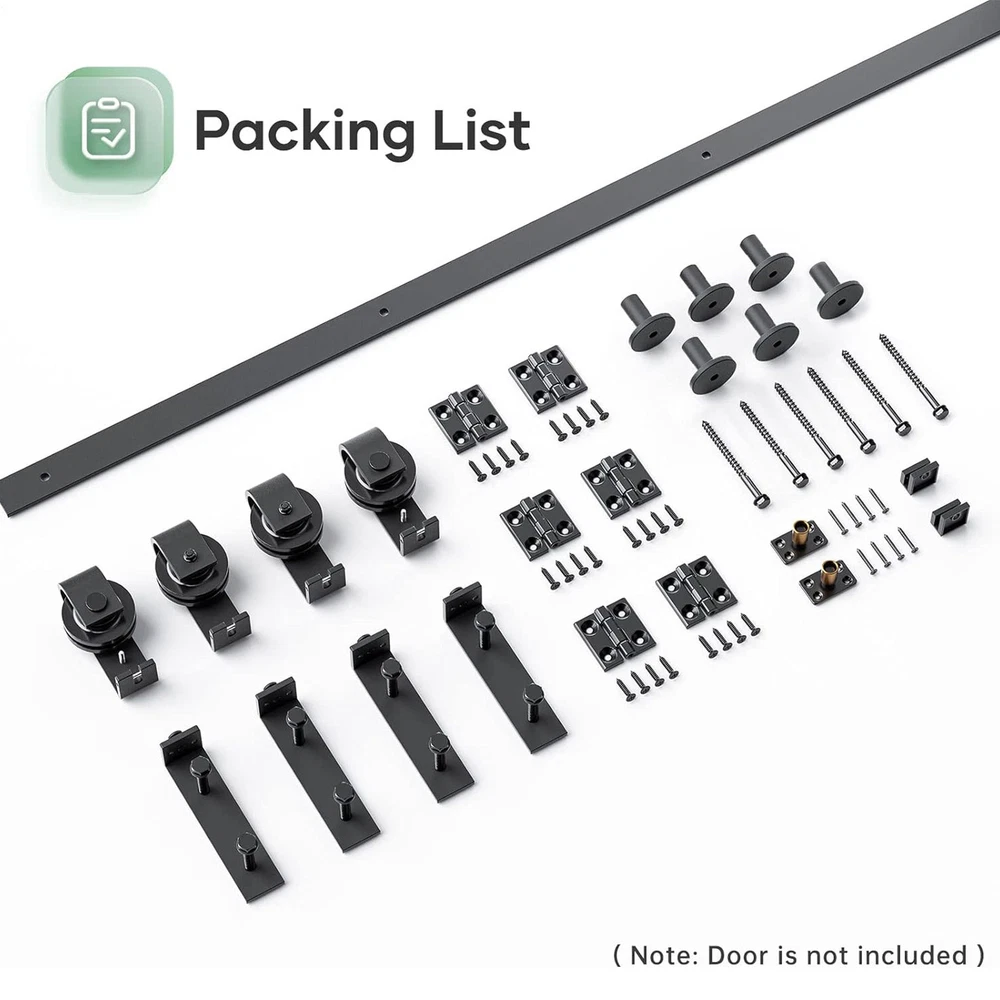 Store category Sign Up Now ! You may also like Product Description Bullet Points: Innovative Space Optimization: Improve your living room, dining room or study with our Rail Sliding Barn Door. This design goodly saves space and provides a wide range of applications, making it perfect for any room. With its versatile style, it seamlessly fits any design concept. Meet Your Need: With 6x hinge, 1x sealing strip, and 2x roller holder, our Rail Sliding Barn Door kit includes 6x spacers, 4x roller swivel stands, 2x floor rails, and 4x rollers. The 5ft track provides sufficient quantity to meet your installation needs. Robust Durability: Formed from high-quality carbon steel, this rail sliding barn door provides dependable endurance with its wear-resistant, solid and durable features that promises a sturdy and long-lasting solution for your home design needs. Intuitive Installation: With detailed instructions and clear pictures, our Rail Sliding Barn Door is effortless to set up. Save time and install with ease: get your bi-fold kit and easy-to-follow guide now. Strong Support: Employing a robust bearing and nylon wheel combo, this Rail Sliding Barn Door ensures good durability even with heavy loads. Its practical design paired with a 6mm thick track makes it a dependable choice for all your sliding needs. Its practical design greatly saves your space while providing a sufficient quantity for your needs. Create a stylish and functional addition to your home with ease. Pictures and text included. Specifications: Colour: Black Material: carbon steel Product Size: Track size: about 76 inches (193CM) Track splicing method: 5 pieces Scope of application: Door panel thickness 0.5-50MM Packing List: 5x FT track 4x roller 4x roller swivel stand 2x roller holder 6x pipe clamps 6x hinge 2x ground guide fixings 2x sealing strip 1x screw pack 1x instruction manual Payment Delivery details Terms of sales About us Feedback & DSRs Shipping 1. We only ship to United States 2. Delivery Time: Ship from US via FedEx Ground or FedEx Home Delivery 1-5 business days with tracking number. 3. We ship the item out in 24-72 hours after received the payment.(Mon-Fri) 4. If you want to chose another address, please leave us a message on ebay.Please check your shipping address carefully before checkout,it can't be changed if order completed. Seriously promise:Refund or resend will be offered if item still not arrive in 7-10 business days. Just send us an email,we will give you a satisfied solution as soon as possible. Payment 1. We accept PayPal only. 2. After you have won the auction, an email will be sent to your eBay registered email address. 3. If you are paying through Paypal using eCheck, note that your item can be shipped only after eCheck has cleared. 4. All payments are expected within 7 days after the last winning auction is closed. A non-payment dispute will be opened if full payment is not received. 5. We only ship the item to your Paypal address for fast and accurate shipment. If you want to change the address, please add a note when you make the payment. after you have paid. Return & Warranty 1. For your best shopping experience in our store and saving your time .Please Do Not click "Return this item" except that you just don't need it any more.Because no return request is our company's Service. Please click "Contact seller" via Ebay Message(protected by Ebay),that is the fastest way to solve any problem for you.You will get the replacement or refund through the communication between us. 2. We fully guarantee Customers benefit within 14 business days if item DOA (damage on arrival), and please contact us within 30 days from the delivery date to exchange or refund.No need return just contact us. Refunds will be given via paypal only. 3. For malfunction products under warranty period, please contact our customer service via EBay Message. Replacements will be sent once after we have a fully communication.No need return the original one after we have fully communication. 4. The buyer has an obligation to cooperate with seller to verify defective item. If you want return, please double check if the item does not work or you just don't need it any more. If the item defective or no work, no need return. 5. All NON-Seller Mistake returns for refund are subject to 20% re-stocking fee and buyer should pay for the return shipping fee and handle fee.(For example,you brought wrong item or cancelled order after item was shipped). 6. A Merchandise Authorization Number (RMA#) is required for all need returned packages(After we have a fully communication). Please contact us to get an "RMA" number before you ship your items back to us. Items returned without an "RMA" number would be ignored or delayed in processing.Returns/Exchanges will not be accepted unless authorization has been issued by our customer service. 7. All return products should be in original package with all accessories included. Contact US Dear buyers, Welcome to our store! Your satisfaction is our top goal,we appreciate your business. 1. If you have any questions, please feel free to contact with us by ebay Message during our business hours ( 9:30a.m. to 5:30 p.m.), or email us through eBay, we will try our best to help you to resolve it. 2. If you are satisfied with our service, please rate the details of the transaction (Detailed Seller Ratings) on eBay and We will do the same for you. 3. If you are not satisfied with the product or service ,please contact us before leave negative or natural feedback, we will try our best to solve the issue to your satisfaction, thanks. Thanks for your patronizing, good luck !!