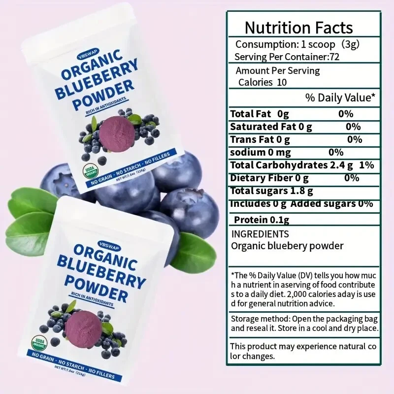 Brand:FDC NUTRITIONWhen to Take:As a dietary supplement, take 700 mg (about 1/4 tsp) once or twice daily, or as directed by a physician.Safety Warning::Always consult your healthcare provider.Color:Color May VaryActive Ingredients:Blueberry Powder (Vaccinium angustifolium)(Fruit)MPN:BLUPWDMain Purpose:Heart Health, Immune Support, Weight Management, General Wellness, Energy Support, Cleansing & Detoxification, Cardiovascular Health, Bone & Joint HealthDosage:700 mgType:BlueberryFeatures:Organic, Dairy Free, Gluten Free, No Added Sugar, Soy Free, Yeast FreeIngredients:Blueberry Powder (Vaccinium angustifolium)(Fruit), MaltodextrinItem Weight:7.6 ozWarning::Keep out of reach of children.Department:AdultFormulation:PowderType of Diet:VeganCountry/Region of Manufacture:United StatesExpiration Date:2 Years