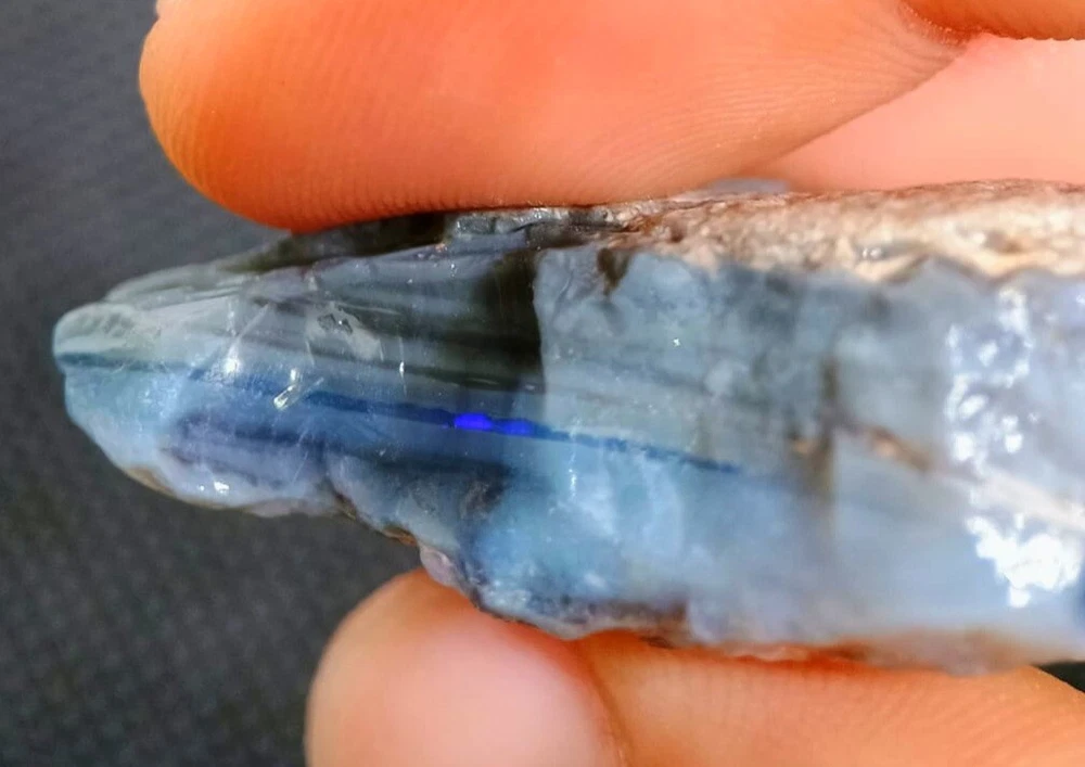 Welcome to Limanty Gems This is a gamble rough Black Opal Potch with colors. Yo can see electric red line in one side and in the other side you se blue with green line. So it has huge potential. This is a solid Black Opal for Opal Hunters Specifications: Type of gem: Opal Color: Black with Blue, purple Dimensions: 35 x 30 x 11 mm Weight: 77.07ct Rare Opal for an unique person in a magnificent environment Feel free to look for another amazing deals in our store!