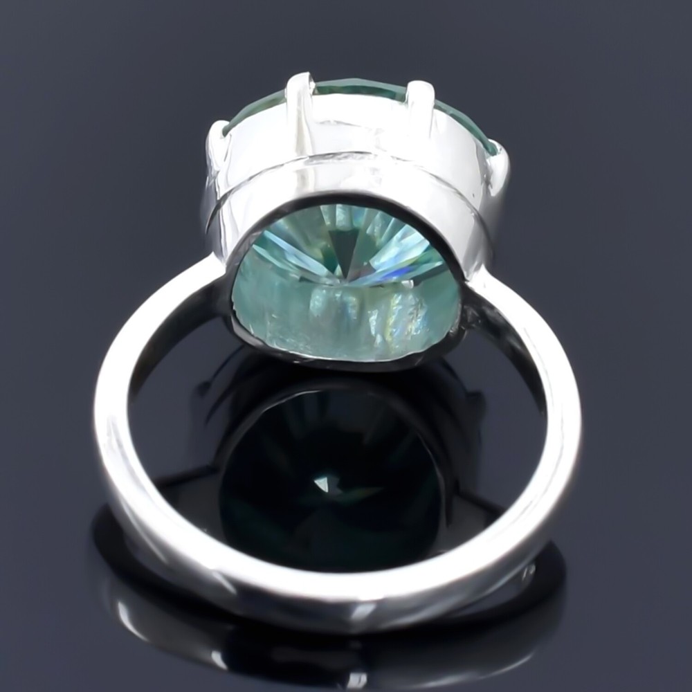 20 Ct EGL Certified Radiant Cut Blue Diamond Ring In 925 Sterling Silver