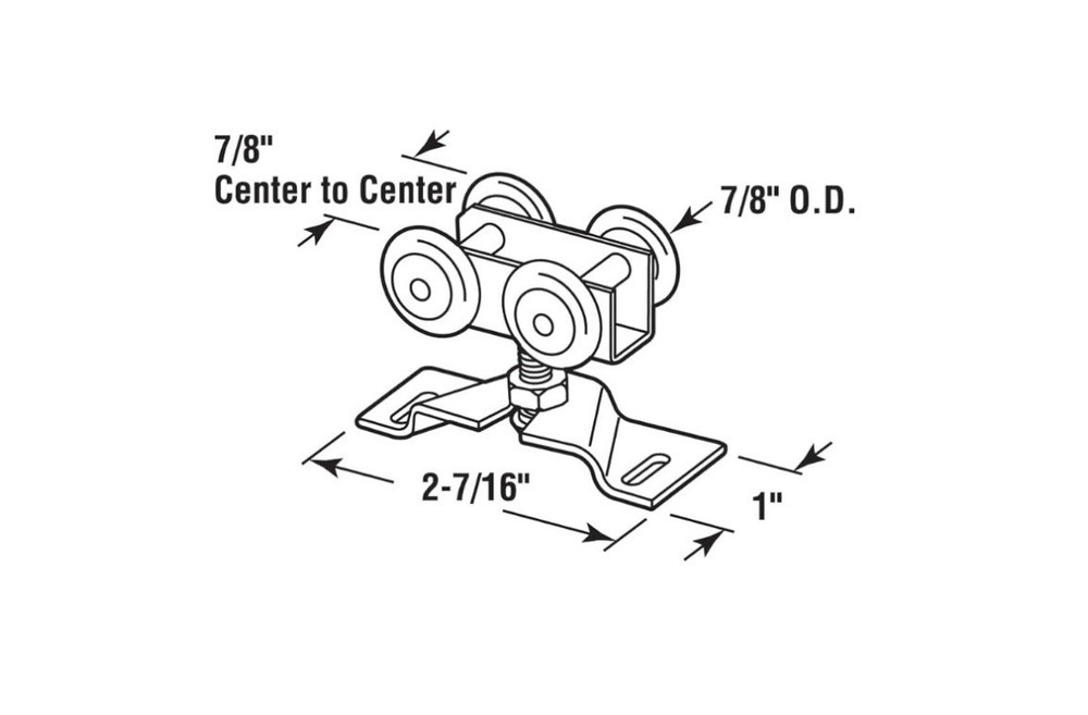 The N 7449 Door Roller Assembly by Prime-Line features a 7/8 inch convex plastic tire with a steel bracket and ball bearing. This roller assembly is designed for smooth and quiet operation, making it ideal for residential or commercial use. The zinc color and lightweight design of 0.46 pounds make it easy to install and compatible with various door hardware systems. With dimensions of 7.28x3.74x1.3 inches, this door roller assembly is a reliable and durable component for maintaining the functionality of your doors. A56Z