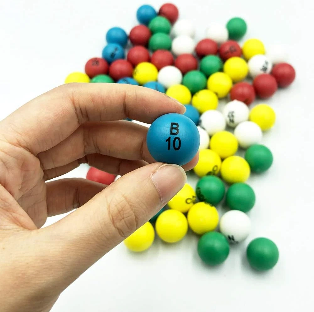 Made of high quality colorful plastic and in total of 75 balls, sturdy and durable. Each ball measures 7/8" (21 mm) in diameter, big enough for children’s hands and adults. Easily gripped and handled. These bingo balls come in 5 bright colors: blue, red, white,green, and yellow. The letters and numbers are in large black print on one side of the ball, making it easy to read and call combinations. Color code of BINGO: Blue-B-1-15, Red-I-16-30, White-N-31-45, Green-G-46-60, and Yellow-O-61-75. This set of replacement bingo balls fit 9" to 12" jumbo size bingo cages. Please check that the raffle bingo cage being used fits 7/8 inch balls. Great for anyone who likes bingo!Includes 75 bingo balls, bingo cage and bingo board not included! Note: the bingo balls will come in plastic frames and you have to remove. Ideal for family bingo games, giving you the opportunity to bring family more fun. Perfect for parties, barbeques, bingo halls, foundraisers, family game nights. You can also use them as markers for classroom activities, giveaways, raffles. Product Description If you need bingo balls for your next bingo game night. If you need bingo balls to replacement your old balls. If you are going to buy a gift for anyone who likes bingo. These bingo balls are the perfect for your needs. STURDY AND DURABLE Made of high quality colorful plastic and in total of 75 balls, sturdy and durable. Improved printing quality to prevent the numbers fade easily. EASY TO READ AND HANDLE Each ball measures 7/8" (21 mm) in diameter, big enough for children’s hands and adults. Easily gripped and handled. The letters and numbers are in large black print on one side of the ball, making it easy to read and call combinations. These bingo balls come in 5 bright colors: blue, red, white,green, and yellow. Color code of BINGO: Blue-B-1-15, Red-I-16-30, White-N-31-45, Green-G-46-60, and Yellow-O-61-75. Note: the bingo balls will come in plastic frames and you have to remove. This set of replacement bingo balls fit 9" to 12" large bingo cages. Please check that the raffle bingo cage being used fits 7/8 inch balls. If you are looking for bingo board or bingo cards, bingo chips to go with your new bingo balls, please check out at our store! Ideal for family bingo games, giving you the opportunity to bring family more fun. Perfect for parties, barbeques, bingo halls, foundraisers, family game nights. You can also use them as markers for classroom activities, giveaways, raffles. Unsuitable for children under age three as there are small parts.