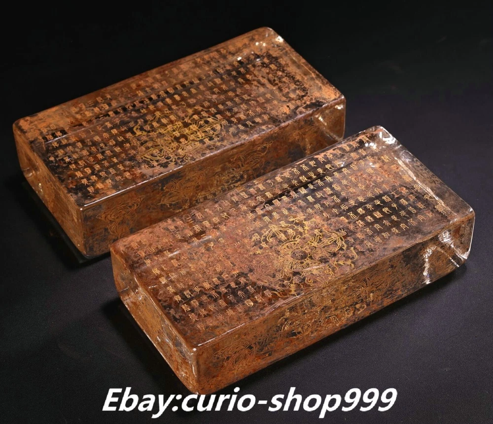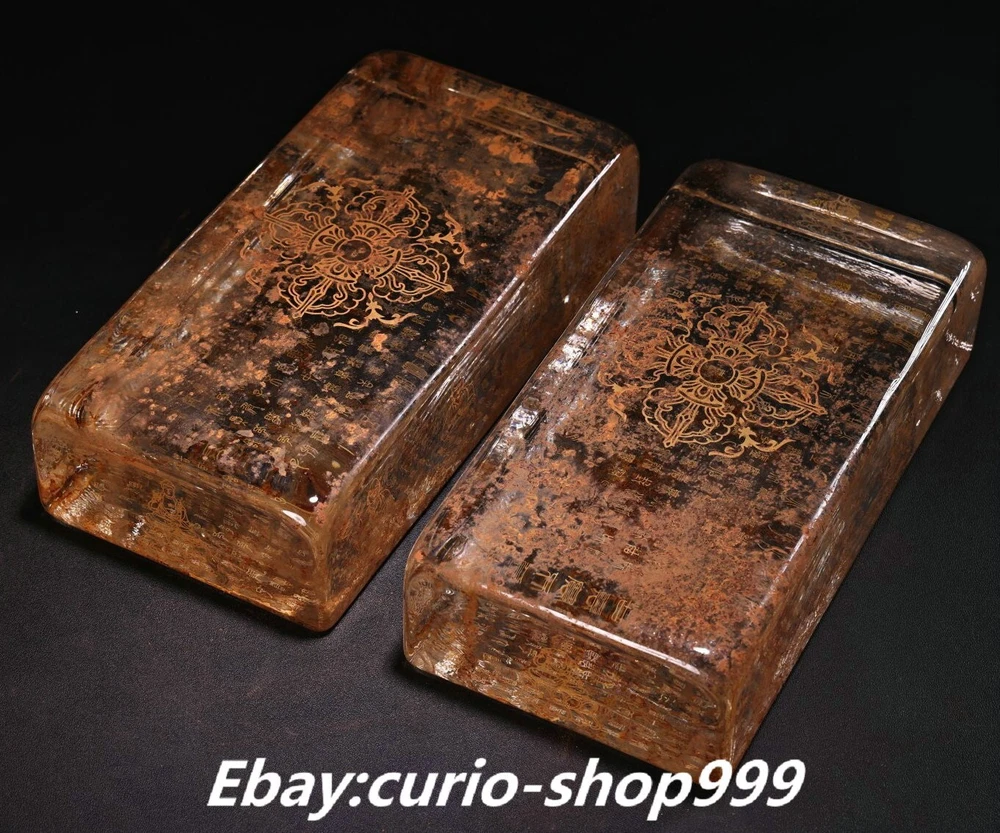 **** Welcome to our antique & Collectable Shop : Porcelain**** Description: Here is 7.8" Old Tibet Crystal Carved Totem Buddhist Scriptures Pillow Statue Pair. It is in good condition, and was created by skilled craftsmen in traditional style with fine handcrafts.This is a great piece of valuable collection, a valuable personal alter or a very good present. the handwork is very fine with incredible detailling. Don't miss out this chance to get it.Wish you good luck! . Material : Crystal Size : Heigh t 1.9 Long 7.8 B readth 3.9 (inch) Condition Perfect Condition. Perfect, with no scratches, flaws or repairs. Weight: 5.5 KG----included the weight of packing materials Shipping cost to all over the world countries in Free Honored Customers: We are selling the collectibles products and crafts in Beijing ,China since 1993 and collected them all over the world all the time . In our shop the bronze sculpture, animal, vase, urn, flowerpot,Incense Burner.Table chair sets. Militaria goods. buddha statues, Bodhisattva Statues, Buddhist Ritual Items etc is our speciality .Many of the items we sell come from our own personal collection and have been in our family for a very long time .My great-grandfather was the first in this family to start collecting art & antiques when he still lived in San Xi and Tibet around 1922 ,some of the paintings he once collected can now be seen in museums around the globe.We won't make money from t he shipping cost, if you dislike the item when you receive it,we can refund all of your money to you within thirty days. Please confidence for bidding . We recommend the combine shipping and offer you an big price discount if you order more items together ! 2024.07.03 四 号