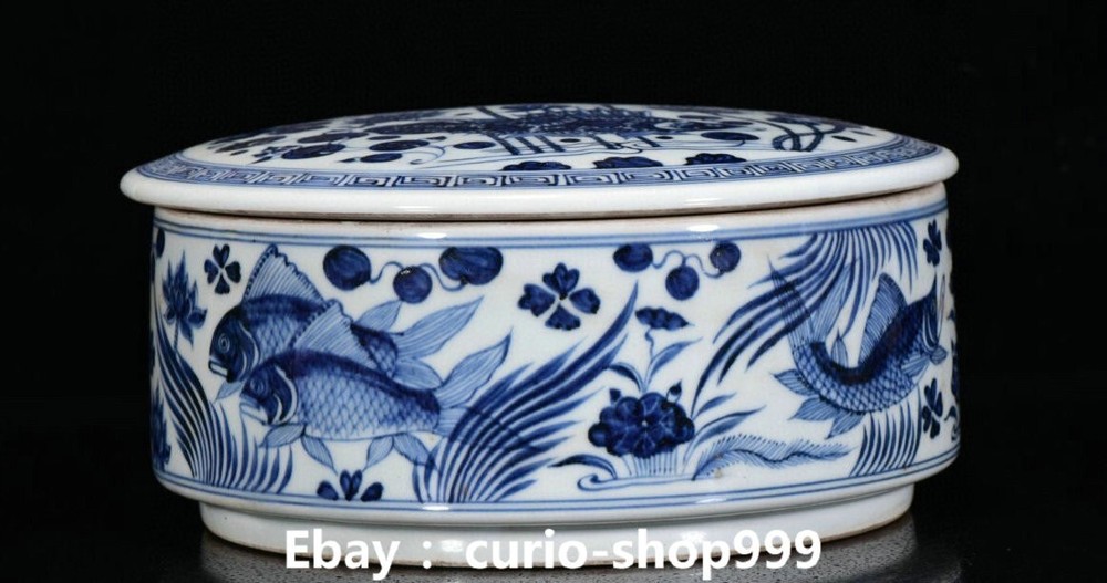 Primary Material: Blue White Porcelain Maker: Size : Height 3.9 Long 7.8 Breadth 7.8 (inch) Region of Origin: China Seller Notes: “7.8" Yuan Dynasty Blue White Porcelain Lotus Flower Fish Animal Crock Pot Jar”