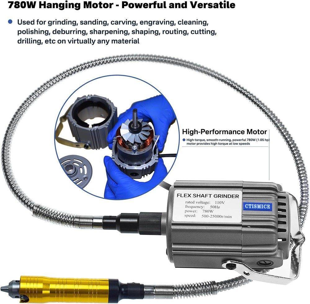 780W Flex Shaft Rotary Tool Kit with Variable Speed 500-25000RPM for Precision Grinding
