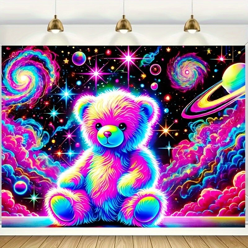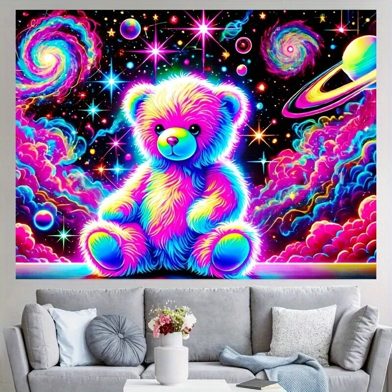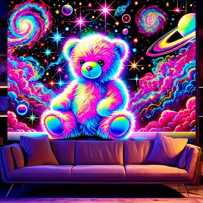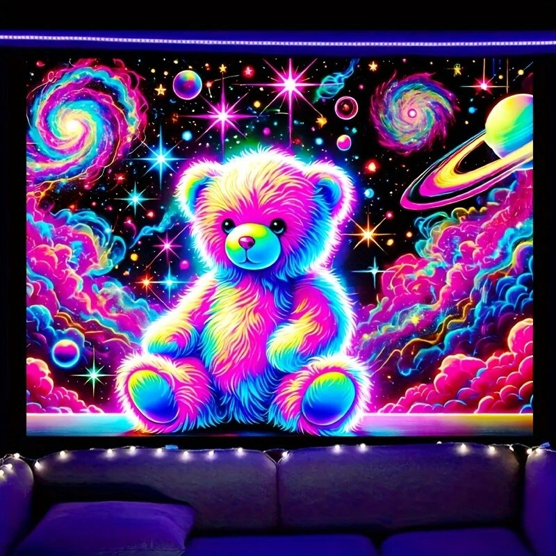 Home78.74"x59.06" Large Bear & Space-Themed UV Black Light Reactive Polyester Fluore