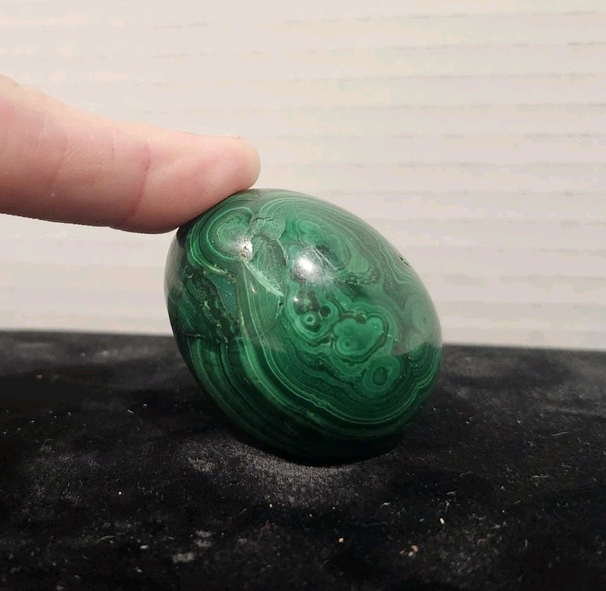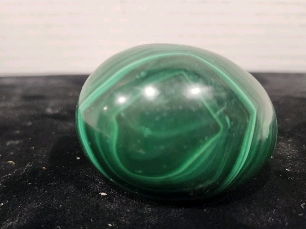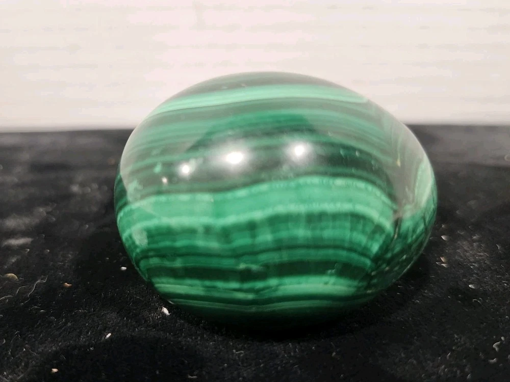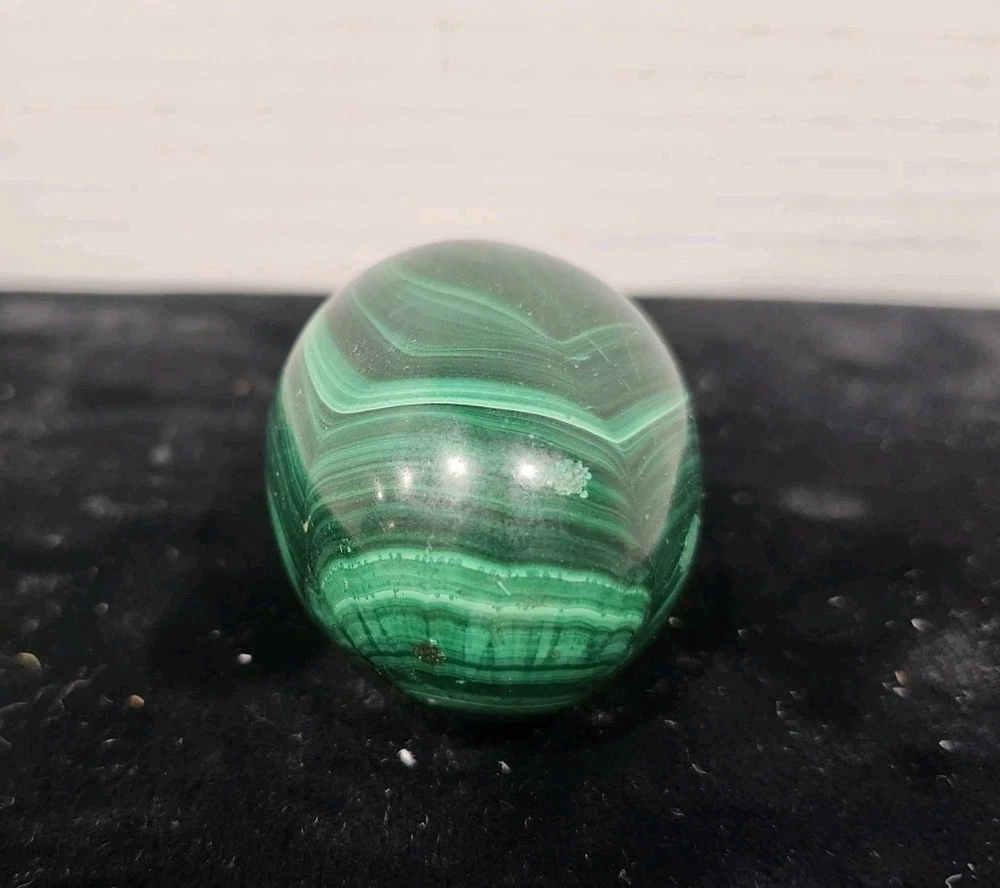 This natural malachite crystal in an egg shape is a stunning desktop ornament that hails from China. The glossy finish and unique shape make it a captivating addition to any collection of crystals and mineral specimens. With its natural beauty and origins, this ornament is sure to be a standout piece for collectors and enthusiasts alike.