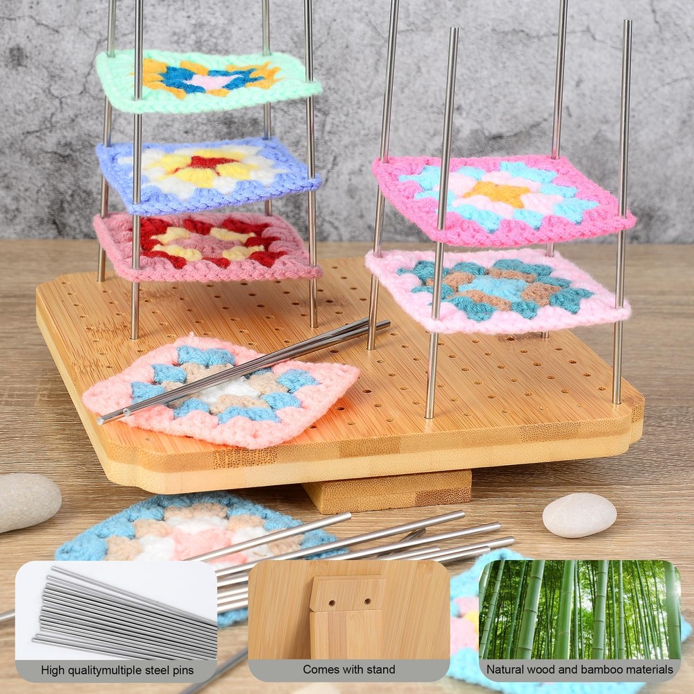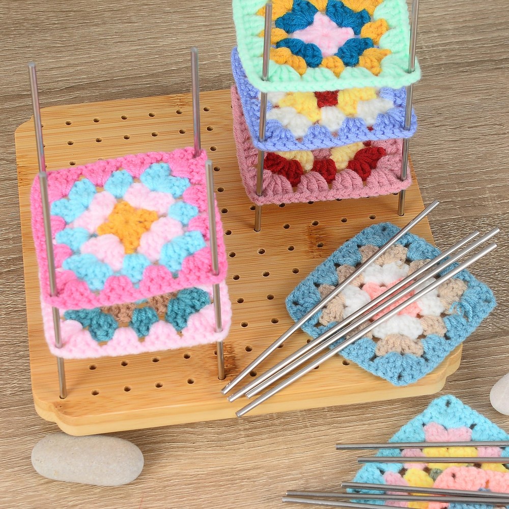 7.8" Crochet Blocking Board with 15 Pegs/Pins for Crochet Projects Accessories Features: 【crochet blocking board】: Size: 7.8 inches x 7.8 inches. The blocking pad is made of high-quality bamboo, making it ideal for beginners. 【Blocking Board for Beginners】: Each row has 13 holes, for a total of 169 holes. Our granny square blocking board with 15 stainless steel pins, each 5 inches long. The hook-and-pin design makes it easy to use, with pins that fit perfectly into the holes and are chamfered for smooth insertion. 【Durable blocking boards for crochet projects】: Foam boards often become unstable with continuous use due to the many holes created by inserting pins. However, our bamboo grid square blocking board is reusable and provides an economical and efficient solution for all your blocking needs. 【Practical and Attractive Crochet Mat】: This is a great choice for knitting enthusiasts, mothers, and grandmothers. It’s especially ideal for blocking granny squares and smaller blocking projects. The pin-equipped crochet blocking board helps make your knitting projects look more professional. SHIPPING We are always working hard to ensure your package arrives as soon as possible. Please understand that some factors like weather, high postal traffic, and the performance of shipping companies are outside of our control. We offer free shipping to the lower 48 states and ship within 3 business days of payment, usually sooner. We do not accept P.O. Boxes. Please provide a physical address.