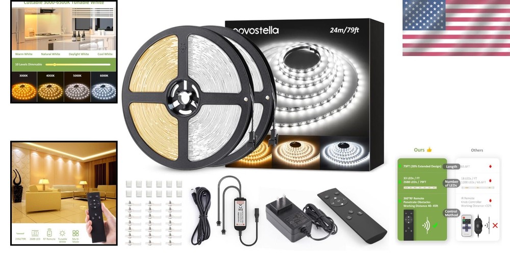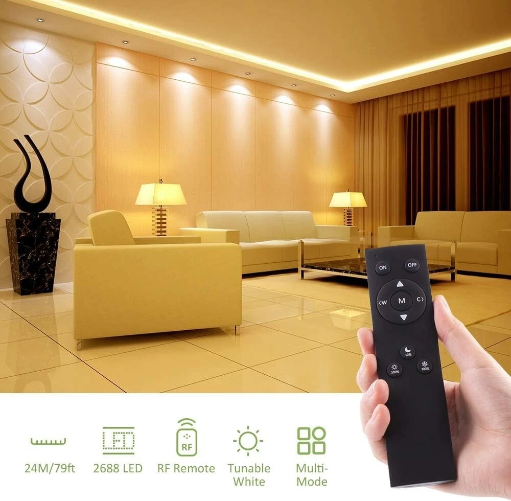 Versatile 79ft Tunable White LED Strip with RF Remote - Modern Lighting Solution ‹ › ‹ › ‹ › ‹ › ‹ › ‹ › ‹ › ‹ › ‹ › ‹ › Versatile 79ft Tunable White LED Strip with RF Remote Transform your living space into an ambiance of elegance with our modern lighting solution—the 79ft Tunable White LED Strip. Whether you're looking for a warm glow or a bright white light, this LED strip is designed to adapt to your needs. Features: Dimmable LED Strip: With 2688 LEDs, offering a tunable range from 3000K (warm white) to 6500K (cool white), allowing you to customize your lighting atmosphere. Remote Control: Enjoy the freedom of 360° control with the RF remote controller, ensuring a strong signal for precise operation from anywhere in your room. Easy Installation: The self-adhesive back and included screws make installation a breeze—complete setup in seconds! Indoor Lighting: Perfect for illuminating and decorating your living rooms, kitchens, bedrooms, stairways, parties, and weddings. Standard Kit: Each kit includes a 79ft LED strip, RF remote, power adapter, controller cable, and mounting brackets for a seamless setup experience. Benefits: Craft a cozy environment or invigorating atmosphere with just the touch of a button. Effortlessly enhance any indoor space with versatility and style. Robust and flexible lighting solution tailored for any scenario. Elevate your home or event decor, creating memorable experiences. Why Choose the Tunable White LED Strip? Step into a world of customizable lighting that complements your lifestyle. Our 79ft Tunable White LED Strip is the ultimate solution to modern lighting challenges. With the ability to adjust color temperatures and brightness to suit different occasions or moods, you can easily synchronize your indoor atmosphere with your personal style. Its effortless installation and comprehensive package ensure you'll have everything you need to achieve beautiful lighting in any room. Don’t settle for ordinary lighting; embrace the extraordinary! Order your Versatile 79ft Tunable White LED Strip with RF Remote today and illuminate your world with elegance and sophistication. Shipping Free & Fast Shipping - We offer free shipping to most of the USA with a normal delivery time of 3-7 days. However, due to the current situation, additional delivery time (up to 3 weeks) may be required for some items. Alternative Carriers - We may use alternative carriers (e.g. USPS, FedEx, UPS, etc.) to ensure your package arrives safely and on time. Due to the use of multiple carriers, we are unable to provide a tracking number automatically. Handling Time - Orders are processed and shipped within 1-2 business days of receiving cleared payment. Shipping Restrictions - Shipping to Alaska, Hawaii, Puerto Rico, Guam, and other US territories may incur shipping charges or delivery restrictions. Please contact us before ordering, or your order can be refunded/cancelled. State Restrictions - There may be restrictions based on your state of purchase. For example, certain items may not be shipped to California due to state regulations. Contact for Tracking Updates - If you require tracking updates or have any concerns about the delivery of your order, please feel free to contact us, and we will be happy to assist you. Return 30-Day Hassle-Free Returns - We want you to be completely satisfied with your purchase. If you are not, you can return the item within 30 days of receiving it for a full refund or exchange. Easy Return Process - To start a return, simply contact us and we will provide you with a prepaid return shipping label and detailed instructions. Restocking Fee - There are no restocking fees for returns. However, the buyer is responsible for return shipping costs if the return is not due to a seller's error. Refund Processing Time - Refunds will be processed within 5 business days of receiving the returned item in its original condition. Payment We accept all major credit cards, PayPal, and Apple Pay for your convenience. Your payment information is secure and encrypted to ensure a safe and seamless transaction. Please complete your payment within 3 days of purchase to avoid any delays in shipping. Feedback Your feedback is extremely important to us. We strive to provide the best products and customer service possible. If you are satisfied with your purchase, please take a moment to leave us a positive review. If you have any concerns or issues with your order, please contact us before leaving negative feedback. We are committed to resolving any problems and ensuring your satisfaction. Contact Us If you have any questions or concerns, please feel free to reach out to our customer support team. You can contact us through the eBay messaging system. We are available Monday to Friday, 9:00 am to 5:00 pm EST, and we will do our best to respond to your inquiry within 24 hours. Buy it now and enjoy a pleasant shopping experience! UPC: Not Set Size: 79ft Power Consumption: 24W Item Height: Not Set Lumens: 1200 Unit Quantity: 2 Occasion: Wedding Features: Dimmable,Easy Installation,Instant On Light Color: Warm White,Daylight White Control Style: Remote Control Department: Adults Theme: Wedding Room: Bedroom,Kitchen,Living Room,Stair,Party Material: Plastic Character: Not Set Labels & Certifications: Not Set Brand: Unbranded Type: Tape Lighting Technology: LED Light Shape: Flexible Sensor Type: None Installation Area: Indoor Color: White Cord Color: Not Set Power Source: Corded Number of Settings: Not Set LED String/Strip Type: Not Set Energy Star: Not Set MPN: Not Set EC Range: Not Set LED Chip Code: 2835 Voltage: 24V Output Voltage: Not Set Character Family: Not Set IP Rating: Not Set Manufacturer: Not Set Amperage: Not Set Style: Modern Country/Region of Manufacture: Not Set Number of Lights: 2688 Color Temperature: 3000K Bulb Life Hours: Not Set Model: Not Set Unit Type: ft