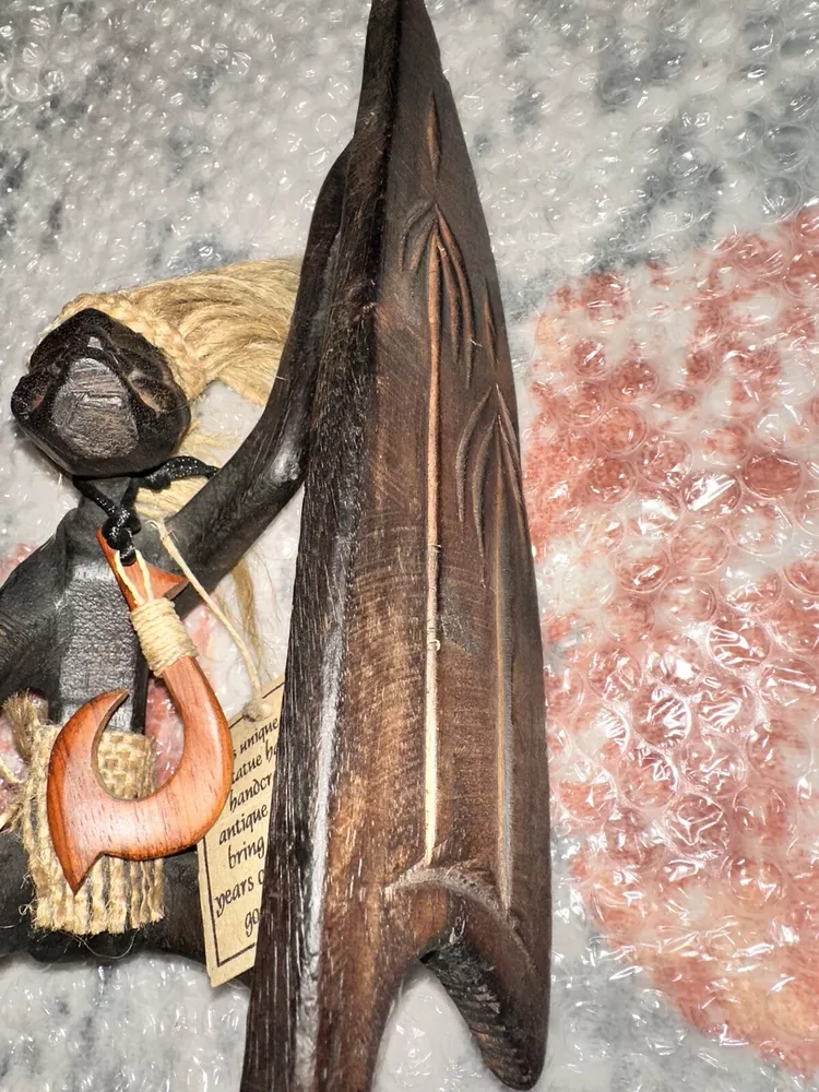 Handmade:YesCountry/Region of Manufacture:United StatesStyle:PrimitiveMaterial:WoodRegion of Origin:HawaiiType:Sculptures & CarvingsSubject:SurfingModified Item:NoProvenance:Ownership History Not AvailableCulture:HawaiianColor:BrownOriginality:Original