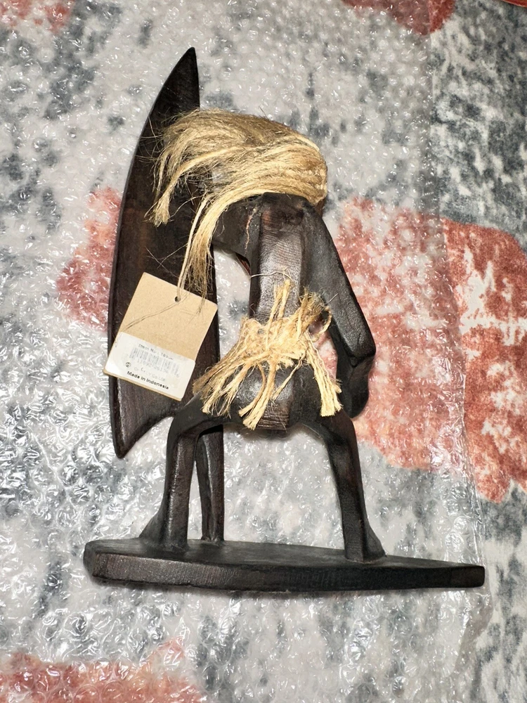 Home#7C Vintage Hand Carved Wood Surfing Hawaii Tiki Man Figurine