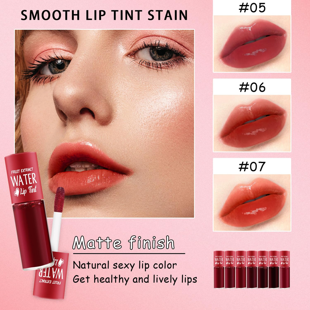 7 Colors Mini Watery Lip Tint Stain Set - Matte Liquid Lipstick Multi Shades