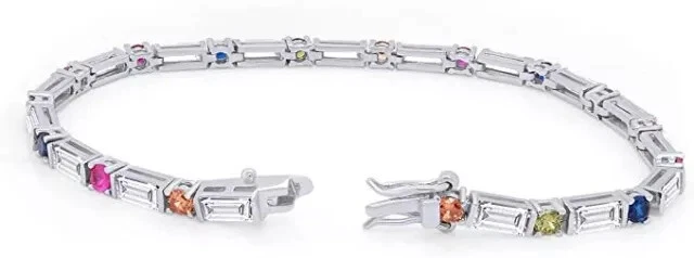 Customized: Yes Number of Gemstones: As Per Picture Metal Purity: 925 Gemstone Clarity Grade: NA Base Metal: Sterling Silver Features: Engraved Main Stone Treatment: Not Enhanced Setting Style: Prong Handmade: Yes Era: Undated Main Stone: Simulated Diamond Shape: Round Color: White Metal: Sterling Silver Vintage: No Main Stone Color: White Charm Type: Snap Wholesale: Yes Main Stone Shape: Baguette Style: Tennis Country of Origin: India Closure: Snap Main Stone Length: As per picture Type: Bracelet Main Stone Creation: Simulated Occasion: Anniversary, Birthday, Christening, Christmas, Engagement, Graduation, Mother's Day, Valentine's Day, Wedding Item Length: As per picture Main Stone Depth: As per picture Sizable: Yes Theme: Beauty Secondary Stone: Diamond Antique: No Seller Warranty: Yes Signed: No Brand: karunas-76 Main Stone Width: As per picture Country/Region of Manufacture: India Material: Stone, Metal Personalize: Yes Cut Grade: Excellent Chain Type: Cable