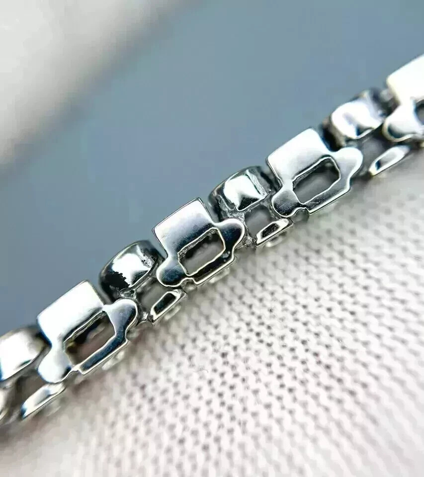 $ 92.0414K White Gold Plated 5Ct Round Cut Lab Created Blue Sapphire Tennis Bracelet 7"
