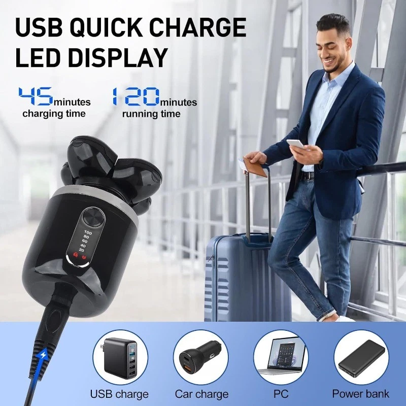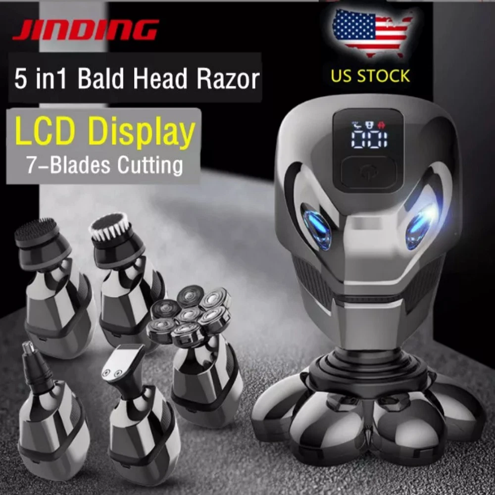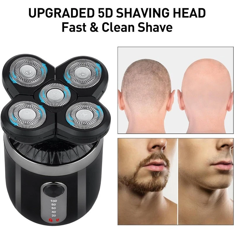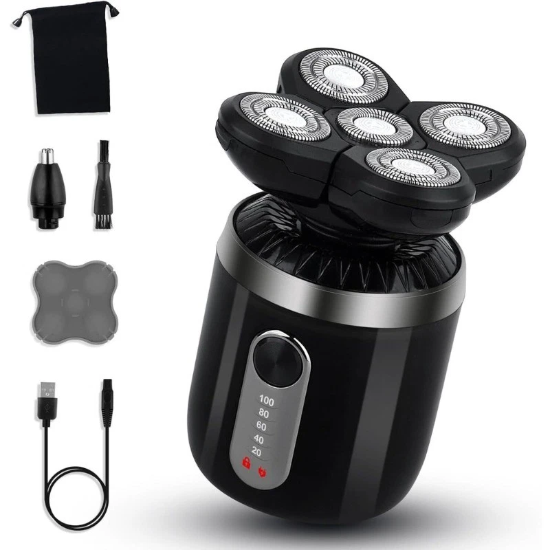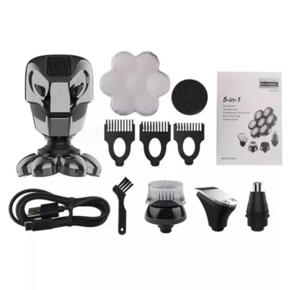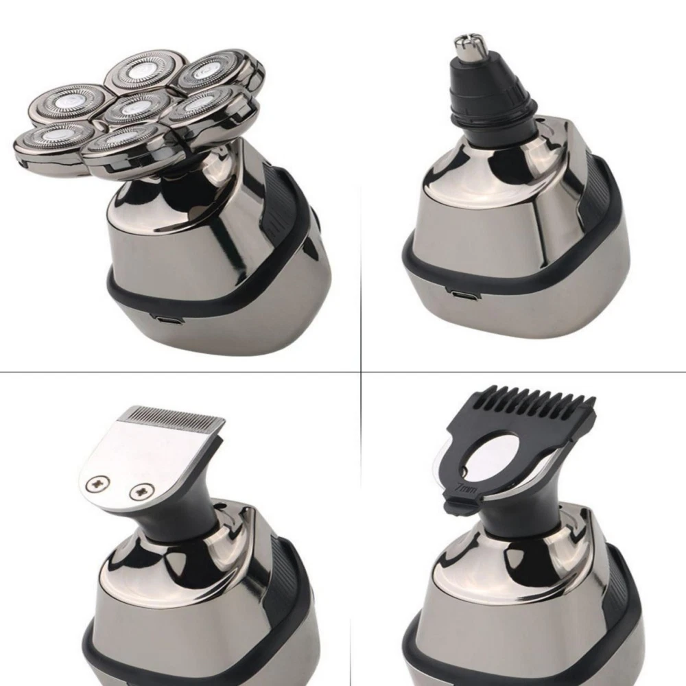 7D 5-in-1 Shaver Cordless Hair Trimmer Bald Head Razor Electric For Men Wet Dry -Rotary -Precision Trimmer / Hair Clipper with 3 length attachments (3mm, 5mm, 7mm) -Nose / Ear Trimmer -Soft Brush -Facial Cleaning / Exfoliating / Pre-shave Massage Brush -Includes cleaning brush and USB cable. Specifications: Material: ABS + Stainless Steel Charge Type: USB Charging Time: ~5 Hours Voltage: 110-240V Package List: 1 x 7D 5-in-1 Electric Shaver (Full parts shown in photos) 1 x Cleaning Brush 1 x USB Cable