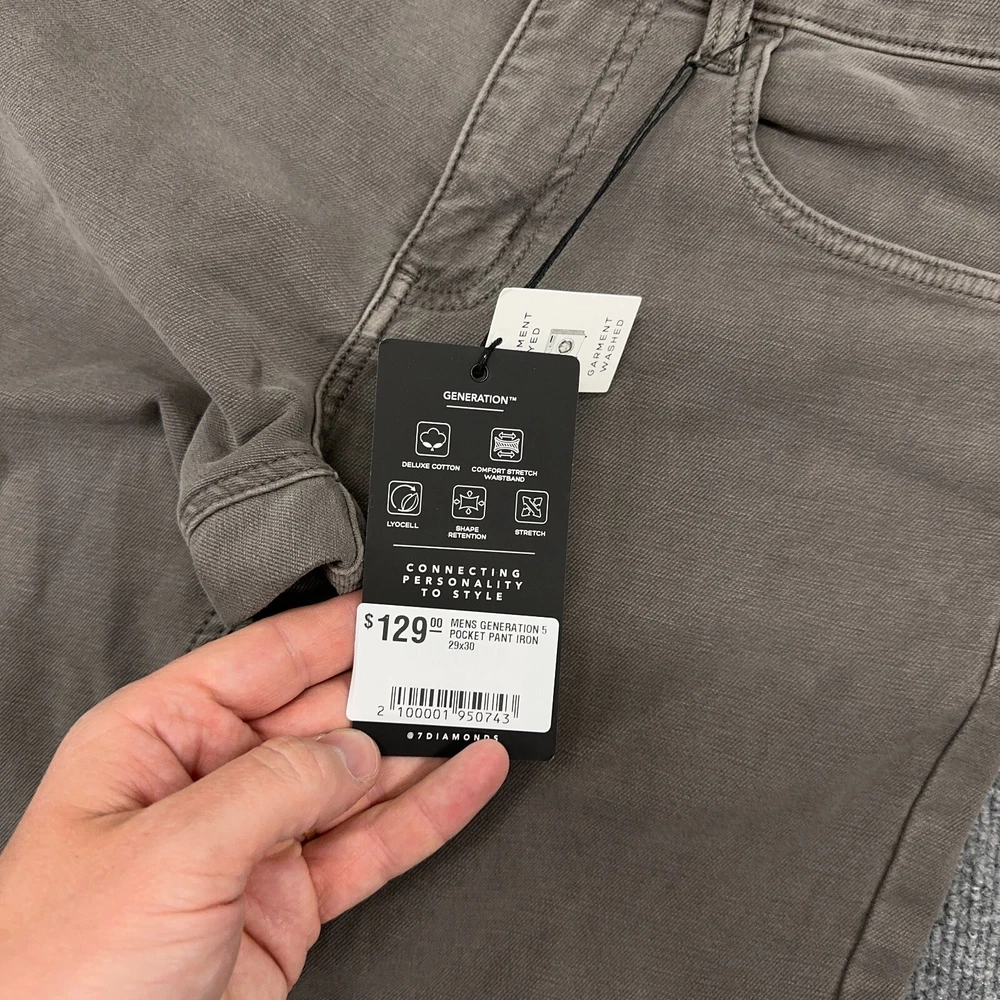 7DIAMONDS Pants Men’s 29x30 Iron GENERATION 5-Pocket French Terry Jean MSRP $129 Brand new condition but there are a couple of light marks from storage. Should come out with a wash but worth noting. Please see photos for additional details.