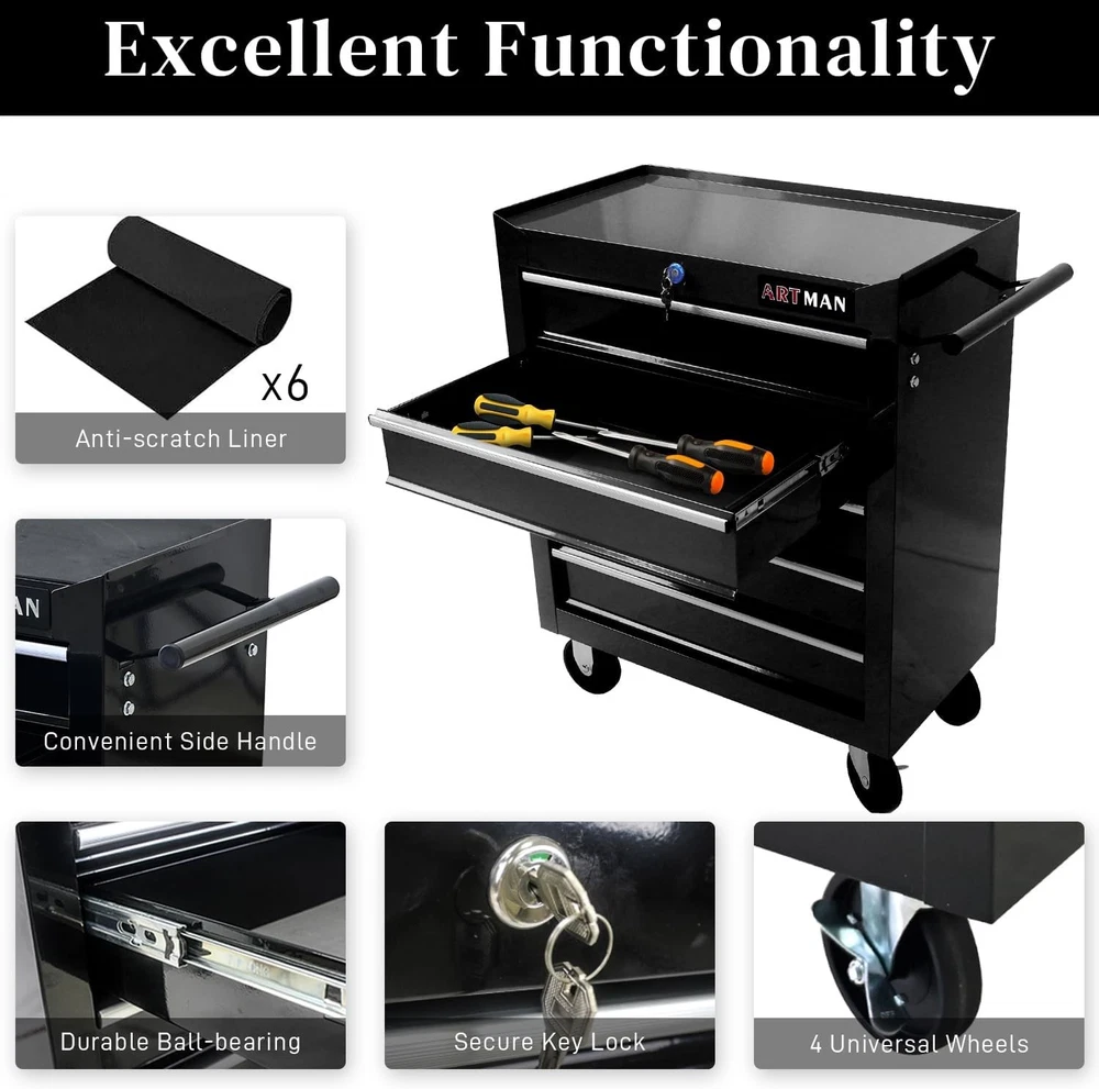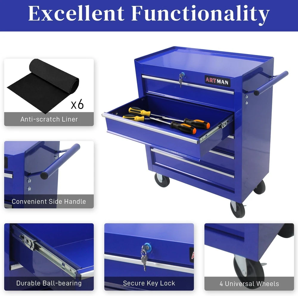 7-Drawer Rolling Tool Chest with Wheels and Lock for Garage Storage