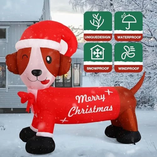 30 Days Return Policy Fast Delivery Trusted seller 7FT Christmas Inflatable Dog Outdoor Decorations with LED Lights, Lighted Blow Up Lawn Yard Garden Clearance for Family Indoor Xmas Holiday Party Decor Product Description ?【Perfect Size & Accessories】7 Feet wide christmas inflatable dog with led lights. Including a blower, 4 stakes, 2 ropes, 3m long power cord, instruction manual and a storage box. Perfect for decorating christmas, party, yard, balcony, garden, pergola, indoor and outdooor places. ?【Premium Fan for inflating Quickly】It can fully inflate in one minute as long as plug in. (Please check whether the fan is blocked if inflation is slow.) ?【Superior Airtight and Water-proof Material】The christmas inflatable outdoor decoration is made of durable Polyester, airtight excellently for full inflation and not easy to be pierced by sharp and hard things. The excellent stitching improves the durability of the Thanksgiving inflatable decorations to ensure years of usage. Soft, light and firm, wear-resistant. ?【Happy Christmas】 When the super bright led lights are lighted up, our inflatable christmas dog Decorations look eye-catching and cool. Decorate your house with our huge and adorable dog blow up yard decorations, a cute appearance and large body will attract the attention of children, neighbors or passersby. ?【Best Wishes】The power cord and rope are long enough, so you can put the item anyw you want, without any restrictions and any worries. The christmas inflatable will be a perfect and safe gift for your children or friends. ?【Customer Satisfactions】 Providing a satisfaction experience is our main priority to our customers. Please feel free to message us firstly through “contact sellers” if items can't meet your expectations or have any problem, we will help you solve it within 24hours. Then celebrations start at our unique lighted christmas inflatable dog decorations! Shipping Returns Payment Shipping Shipping is FREE to all addresses other than APO/PO boxes in the lower 48 states. All our stock ships from US-based warehouses. Shipped via USPS or UPS (depending on location and package weight) Unless stated otherwise, all orders will ship within 24-72 hours of your payment being processed. Check our feedback to see the great reviews of FAST shipping we offer. Returns As our valued customer, we will do our best to make sure the product you receive arrives to you on time and as expected. If you are not satisfied with your purchase, please contact us within 30 days of receiving your order to process a return. Payment We currently accept payment via eBay managed payments only. Once payment is cleared, we will dispatch your shipment within 1-3 business days. Please refer to the "Shipping" tab for more information regarding shipping speed to your destination.
