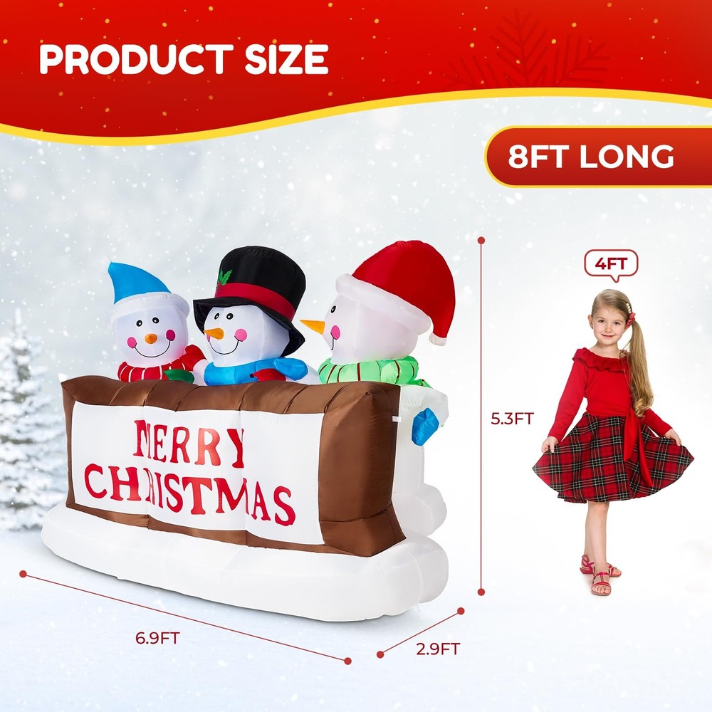 ❄️Easy and Safe to Use❄️ Equipped with a high-quality blower that lasts up to 5000 hours, inflates fast and the fan runs quietly. Simply plug in the power, blow up snowman family will automatically light up built-in LED lights and complete the inflation within 3 minutes. Don’t worry about storage, the bottom of each snowman has a zipper. Unplug the power, blowup snowman can also deflate easily. When deflated, fold and store it in good condition to wait for the next holiday decor use! ⛄️Fantastic Christmas Decorations - This pretty 7-foot tall Christmas inflatable snowman wears a loving adorable top hat and with sweet warm smile, just like welcoming guests. It will definitely attract their attention and delight them when your kids or your guests come at the door or garden. Perfect for winter Christmas outdoor yard decorations, Christmas event decoration, Holiday blow-ups, Christmas Eve night decor. ⛄️Excellent Craftsmanship - giant inflatable snowman is made of IP44 waterproof 210T high-density thick polyester material, which is very wrinkle-resistant and not easy to be pierced by sharp and hard things, The excellent stitching process can effectively prevent tears and rips, which improves the durability of the inflatable decoration. With a 9.8 foot power cord, you can flexibly inflate the inflatable snowman near your house, or add an extension cord to decorate anywhere in your yard ⛄️Stable and Secure - This cute inflatable snowman come with 8 stakes, 4 ropes and built-in 3 Water bag, which will keep this cute snowman firmly fixed to the ground. What’s more, in order to enhance the decoration effect of the Christmas snowman, the built-in water bag allow it to stand without support when there is no wind. It's a great gift for your children and friends! ⛄️Built-in Super Bright Lights - This friendly blow up snowman built-in bright RGB ball light, which makes it look sparkly and very beautiful even in dark night. It will definitely light up your yard or lawn, bring you surprises and joy, make your home full of festive mood. 7FT is big enough to make your yard stand out, it will be the coolest decoration in the whole neighborhood! ⛄️Easy & Safe to Use - Equipped with a powerful blower, inflates fast and doesn't make much noise. Just plugging into the power, Christmas snowman self-inflates within 1 minute. Unplug the power, it can also deflate easily. After deflated, it's easy to storage and save space, wait for next Christmas and winter to use it.