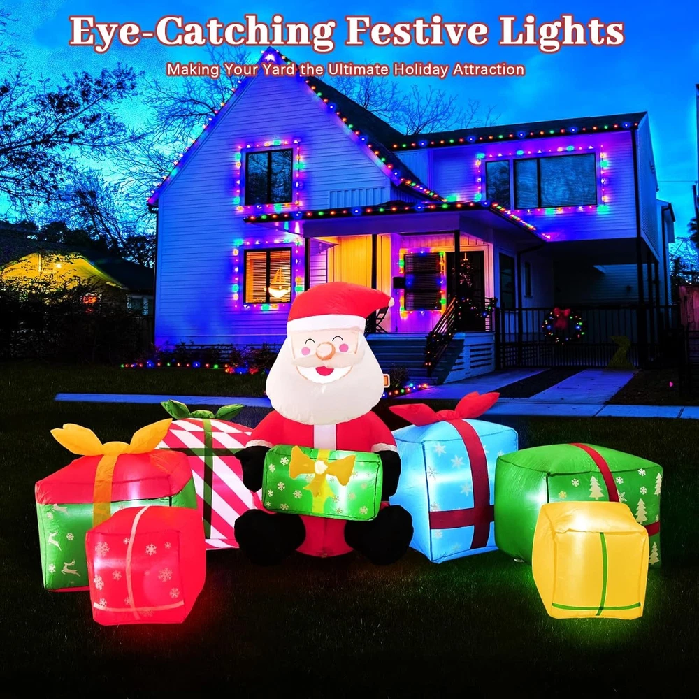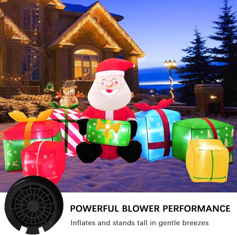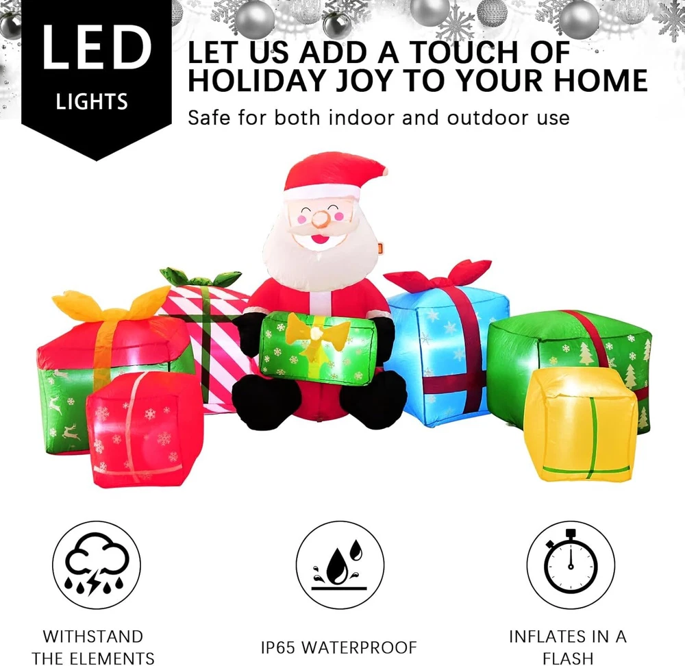 7FT Long Inflatable Santa Claus with Presents, Lighted Christmas Inflatable Gift Boxes Yard Decoration, LED-Lit Blow Up Santa for Outdoor Holiday Decor, Festive Inflatable Christmas Decorations Item Description Santa's Grand Gift-Giving Spectacle: Transform your yard into the ultimate holiday hotspot with our 7 ft inflatable Santa! With a jolly smile, Santa sits merrily among six vibrant gift boxes, each decorated with charming Christmas patterns like snowflakes, reindeer, Christmas trees, and bows. It's a scene straight out of a holiday storybook! Dazzling Holiday Lights: Make your Christmas nights sparkle with built-in LED lights that illuminate Santa and his colorful gifts. It's like having a mini light show right in your yard, spreading cheer to all who pass by. Instant Holiday Fun: Get your festive spirit soaring in minutes! Our powerful air blower and handy UL-certified adapter make setting up Santa and his gifts a breeze. With 6 ground stakes, Santa will stay put, even if he has to brave a winter wind! Built to Sleigh: Crafted from durable 190T polyester with sturdy stitching, our Christmas Santa inflatable is designed to withstand all the holiday fun. It stays inflated and jolly through the season and packs away neatly for the next year. A Present of Pure Joy: Spread the holiday magic by gifting this delightful Christmas Santa blow ups! Its playful design and generous size make it a standout present, arriving in a festive box that's perfect for Christmas lovers. › See more product details Transform your yard into a Christmas wonderland with this adorable 7-foot inflatable! Santa sits happily in the center, holding a gift, surrounded by 6 festive gift boxes, each decorated with classic holiday designs like snowflakes, reindeer, and Christmas trees! As the sun goes down, watch the magic come to life! The built-in color-changing lights will make Santa and his presents glow, creating a bright and festive scene that’ll have the whole neighborhood stopping by for a look. Perfect for day or night, this Christmas inflatable gift boxes will spread holiday cheer to kids, neighbors, and even Santa himself when he comes by! It's super easy to set up—just close the zipper, plug it in, and secure the Christmas blow-up gift boxes in place using the 6 included plastic stakes. It’ll stay put, even on chilly winter nights! When the fun’s over, simply pack it up for next year’s celebrations—easy as can be! Don’t wait to bring this joyful decoration home—it’s not just a display, it’s a holiday memory in the making! Payment We accept payment only through PAYPAL Shipping We ship products worldwide through standard express courier service, it will reach within 7 to 10 days to abroad buyers, we ship the product after recieved clear payment and give full information about shipment to the buyer Return We accept product return within 7 to 21 days from delivery date but product should be in original position and not in damaged condition,the return shipping charges will be buyer responsibility