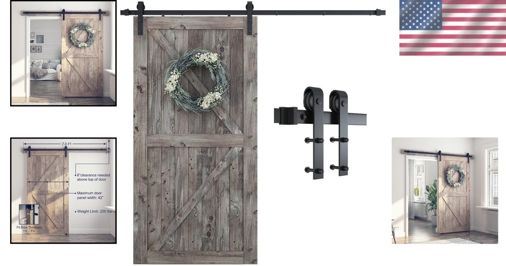 $ 77.256.6FT Heavy-Duty Barn Door Kit with Smooth Nylon Rollers for Superior Durability