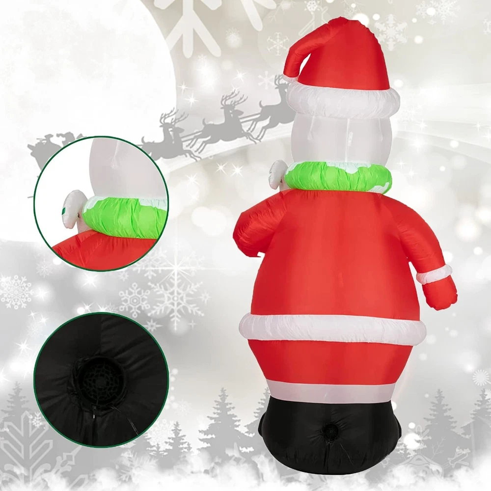 7Ft Inflatable Snowman - Outdoor Christmas Decorations, Xmas Blow Up Yard Decor with Built-in LED Lights, Stakes - Perfect for Yard, Lawn, Garden - Christmas Inflatables Cute Design: This inflatable snowman features a cute and playful design in Christmas costumes that attracts the attention of children. The unique appearance adds a festive touch to your outdoor decor. The built-in LED lights illuminate your garden and yard, creating a magical holiday atmosphere. Stable & Secure: Our blow-up snowman comes with 4 plastic fixing stakes and 4 bundles of fixing ropes, ensuring that the inflatable remains firmly fixed to the ground, even in windy conditions. This provides stability and , preventing the snowman from toppling over or moving around. Easy to Use: With a powerful blower included, this inflatable snowman inflates quickly for easy setup. Simply plug it into a power source and watch it self-inflate. When you're ready to deflate and it away, simply unplug the power and it will deflate easily. High Quality: Made of high-quality polyester fabric, this inflatables snowman is durable, weatherproof, and offers sun protection. It can withstand various outdoor conditions and is suitable for both indoor and outdoor use. Please remember to protect the power adapter from getting wet to ensure safe usage. Christmas Decorations: Standing at 7ft tall, this snowman is the perfect addition to your outdoor yard, garden, or Christmas decorations. It adds a festive touch to your Christmas Eve decorations, winter decorations, Christmas night events, and can be used as party Christmas props. Create a joyful and festive ambiance with this inflatable snowman.