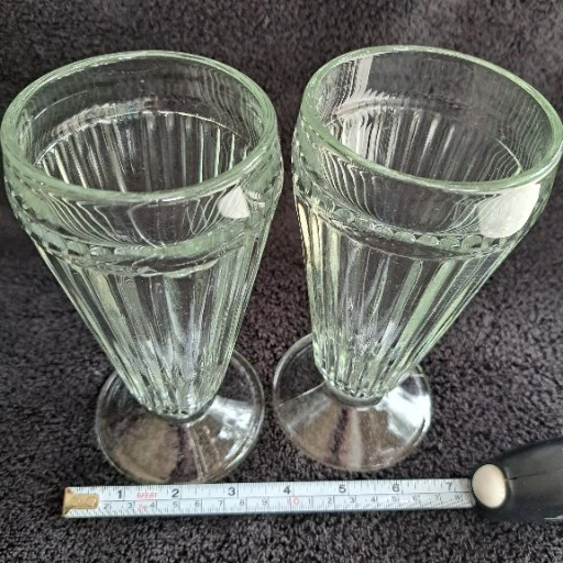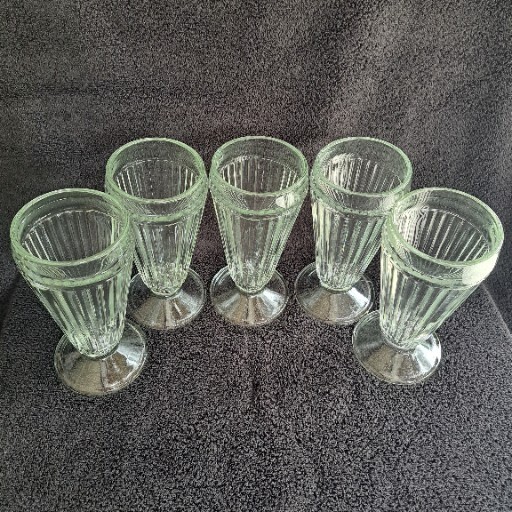 Elevate your dessert experience with this set of 5 clear ribbed pedestal parfait glasses. Perfect for all occasions, these classic glasses stand at 7 inches in height and have a 3.25" top diameter. The ribbed sides and pedestal feature give them a touch of elegance that will impress your guests. Made of high-quality glass, these parfait glasses are suitable for all types of cold desserts, from ice cream sundaes to fruit parfaits. Their timeless design and theme of ice cream soda parlor make them a perfect addition to any home. Whether you're hosting a party or just enjoying a sweet treat, these glasses are sure to enhance your overall experience.
