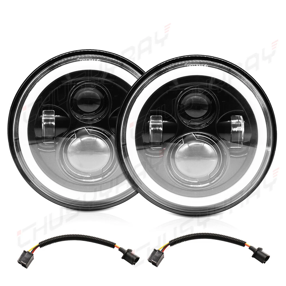 【PACKAGE INCLUDED】 2pcs x 7inch Round LED Headlights + 2pcs 4inch LED Halo Fog Lights + 2pcs x H4 to H13 adapter 【EASY TO INSTALL】 Just plug and play for update Wrangler LED headlights and fog lights assembly (some may need a little modification). DOT approved, legal on the road & built-in EMC function, no need extra decoder 【HIGH PERFORMANCE】 7" LED headlight and front bump LED fog light with halo angel eyes DRL replaces original halogen and HID headlight. Made of DIE-Casting aluminum housing and polycarbonate lens, ribbed design for better heat dissipation. Rustproof and shock-proof. Sealed housing, Water-proof IP67. Over 50000 Hours Lifespan. Specification Condtion: New Brand: chusyyray High beam: 120Watt 9600LM Low beam: 110 Watt 6000LM HI/LO BEAM: Pure White / Turn Signal Color:Amber / DRL Color: Gloden Yellow With rebreather: Better waterproof, dispelling fog inside Anti Flicker and EMC inside: No Electromagnetic Interference or flickering Sharp cut-off line with superior light output EASY INSTALLATION - No extra wire adapter and bracket needed, Just Plug & Play Certification: DOT Waterproof Rate: IP67 Feature: Anti-crash Anti-crash lens are very important for offroad, which will keep headlights intact when attacked by little rocks. They won't be broken even beated by a hammer ! Maximum protection for led headlight from minor abrasions and slight scratching. No worry to have offroad on forest, desert and so on. Plug N Play Other headlights require extra dongles, anti flicker harness, and are built with sub par components. Our headlights feature built in anti flicker technology, DOT approved and and everything you need for installation. Let them be your Jeep Halo headlights, they will never let you down! IP67 Waterproof Our 7'' LED Headlights are well constructed. They come with Double Breather Valve to prevent water getting inside. Avoid moisture or condensation in foggy or raining days. IP68 rated waterproof, can work well in rainy days, snowy days and other weather conditions. Package Includes: 2Pcs x Round 7 Inch LED Headlights 2Pcs x Round 4 Inch LED Fog Lights 2Pcs x 9008/H13 Adapter