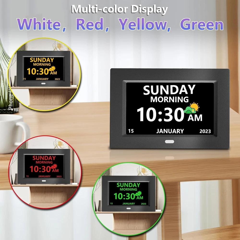 Large Digital Clock for Elderly 7 Inch Display 12 Alarms Auto Brightness ‹ › ‹ › ‹ › ‹ › ‹ › ‹ › ‹ › ‹ › ‹ › ‹ › Large Digital Clock for the Elderly - 7 Inch Display Elevate Your Daily Routine A perfect blend of functionality and elegance, the Large Digital Clock is designed specifically for seniors, enabling them to embrace independence and clarity in their everyday life. With a generous 7-inch display, this clock is more than a timekeeper; it’s a reliable companion. Features: Easy to Read Display: High contrast screen with bold letters clearly presents the time, date, day of the week, and . Customizable Display Modes: Choose from three distinct views - Elderly Clock, Wall Clock, or Colorful Clock, to suit individual preferences. 12 Alarms & 3 Medication Reminders: Help maintain a productive routine with programmable alarms for daily activities such as appointments, exercise, and taking medication. Automatic Brightness Adjustment: Effortlessly dims at night and brightens during the day, ensuring visibility at all times, with three manual brightness settings available. User-friendly Setup: Comes with a clear manual that supports multiple languages and various time formats for a personalized experience. Durable Design: Crafted to withstand daily use without compromising performance, ensuring longevity even in the hands of users with limited dexterity. Benefits: Helps seniors manage their time and responsibilities more effectively. Large display eliminates the frustration of straining to see the clock. Multiple alarms serve as helpful reminders for daily activities, promoting a proactive lifestyle. Sturdy construction ensures resilience against accidental drops and mishaps. Easy setup guarantees no unnecessary techno-stress, making this clock accessible to everyone. Why Choose Our Large Digital Clock? This clock is more than just a timepiece; it enriches the lives of elderly individuals by providing them with clarity and independence. Its elegant design suits any room, while its versatile functionalities make it practical for bedside, desk, or wall display. Empower your loved ones with a tool that supports their daily routines and enhances their lifestyle. Transform the way they perceive time—all while providing peace of mind for family members. Invest in clarity and comfort—order the Large Digital Clock today! Shipping Free & Fast Shipping - We offer free shipping to most of the USA with a normal delivery time of 3-7 days. However, due to the current situation, additional delivery time (up to 3 weeks) may be required for some items. Alternative Carriers - We may use alternative carriers (e.g. USPS, FedEx, UPS, etc.) to ensure your package arrives safely and on time. Due to the use of multiple carriers, we are unable to provide a tracking number automatically. Handling Time - Orders are processed and shipped within 1-2 business days of receiving cleared payment. Shipping Restrictions - Shipping to Alaska, Hawaii, Puerto Rico, Guam, and other US territories may incur shipping charges or delivery restrictions. Please contact us before ordering, or your order can be refunded/cancelled. State Restrictions - There may be restrictions based on your state of purchase. For example, certain items may not be shipped to California due to state regulations. Contact for Tracking Updates - If you require tracking updates or have any concerns about the delivery of your order, please feel free to contact us, and we will be happy to assist you. Return 30-Day Hassle-Free Returns - We want you to be completely satisfied with your purchase. If you are not, you can return the item within 30 days of receiving it for a full refund or exchange. Easy Return Process - To start a return, simply contact us and we will provide you with a prepaid return shipping label and detailed instructions. Restocking Fee - There are no restocking fees for returns. However, the buyer is responsible for return shipping costs if the return is not due to a seller's error. Refund Processing Time - Refunds will be processed within 5 business days of receiving the returned item in its condition. Payment We accept all major credit cards, PayPal, and Apple Pay for your convenience. Your payment information is secure and encrypted to ensure a safe and seamless transaction. Please complete your payment within 3 days of purchase to avoid any delays in shipping. Feedback Your feedback is extremely important to us. We strive to provide the best products and customer service possible. If you are satisfied with your purchase, please take a moment to leave us a positive review. If you have any concerns or issues with your order, please contact us before leaving negative feedback. We are committed to resolving any problems and ensuring your satisfaction. Contact Us If you have any questions or concerns, please feel free to out to our customer support team. You can contact us through the eBay messaging system. We are available Monday to Friday, 9:00 am to 5:00 pm EST, and we will do our best to respond to your inquiry within 24 hours. Buy it now and enjoy a pleasant shopping experience! Unit Quantity: 14.08 oz Features: Alarm,Large Display,Auto Dimmable,Calendar Display,12 Alarms,3 Medication Reminders,3 Display Modes Theme: Plain Room: Bedroom,Living Room,Study Room Material: Plastic Department: Adults Type: Alarm Clock Display Type: Digital Color: Black Movement: Automatic Power Source: Corded Electric Style: Modern Shape: Rectangular Protection Plan: No Coverage Item Height: 5.63 Inches Item Weight: Less Than 1 lb Unit Type: oz