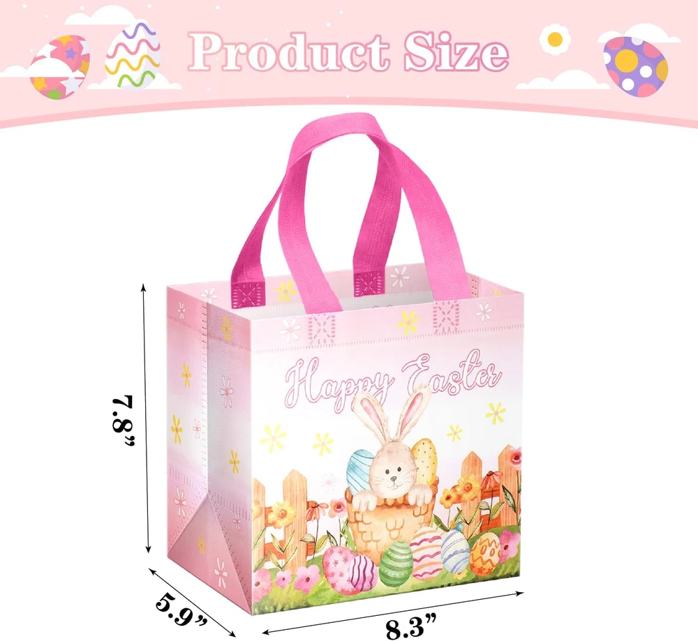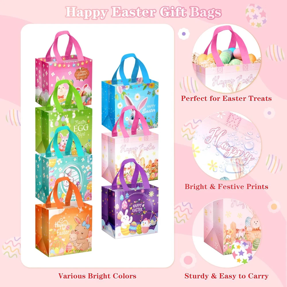 7Pcs Happy Easter Gift Bags, Reusable Non-woven Goodie Bags with Handle for K...