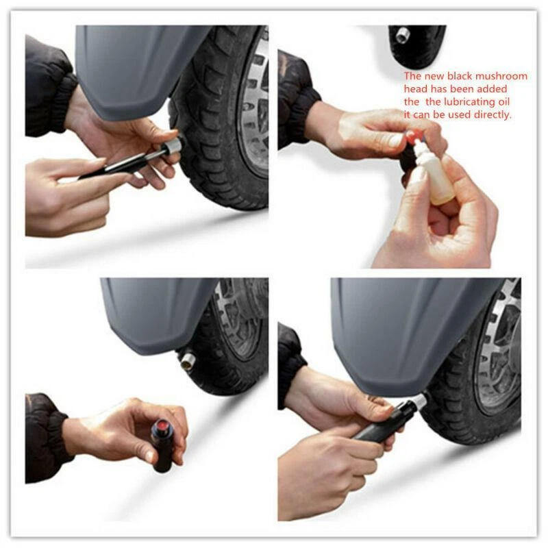 7Pcs Outer Tire Puncture Repair Kit Mushroom Plug Tool Motorcycle Scooter Bike Product Description 7Pcs Outer Tire Puncture Repair Kit Mushroom Plug Tool Motorcycle Scooter BikeNew Style Tire Repair Plugger Tire Wheel Repair Kit Mushroom Plug Probe Nozzle Now can be easily connected on or off the wheel with this new style tool The Inflator that drives the air pressure into the hole. The shaft of the inflator expands under pressure to fill the puncture. The mushroom head of the inflator seats on the inner wall allowing no air to escape. Tire does not need dismounting from the wheel. Inflator enters straight in puncture. Mushroom head seats on inner wall of tire. Package Includes: One set of Tire Wheel Repair Kit(as the picture shown) Note:Mushroom head has been added the the lubricating oil,it can be used directly eBay Cross Border Trade powered by ChannelEffect