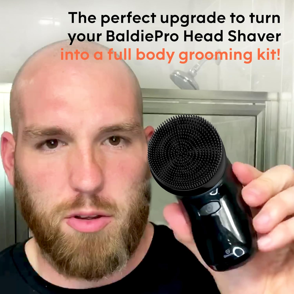The Perfect Upgrade: The Groomie 7-Piece Attachment Kit includes everything you need to make your Groomie BaldiePro Head Shaver a full body grooming kit or replace the accessories from your Groomie BaldiePro Head Shaver kit. What's Included: This kit includes one precision clipper, three guards, one ear and nose trimmer, one exfoliator brush, and one pre-shave massager. For the Closest Shave: Whether you're trimming your hair before a shave or lining up your beard, our Precision Hair Trimmer keeps you looking so fresh & so clean! Pre-Shave Prep: Exfoliate, cleanse, & prep your skin for the smoothest, closest shave with our Exfoliator Brush. Attach the brush to your BaldiePro & let it work its magic! Painless Nose & Ear Trimming: Get rid of hair in your nose and ears. This trimmer will cut your hair without pain and unpleasant pulling. Gentle Scalp Massager for Smooth Shaves: This short-bristle massager gently removes all dirt & dead skin cells to soothe and prep your scalp for a smooth shave. Attach it to your BaldiePro & massage in minutes! About Groomie: At Groomie, we understand the challenges of thinning hair and the frustrations of traditional shaving methods. That's why we've developed innovative grooming tools specifically for those embracing baldness. Join our community of confident individuals who proudly show off their sleek, smooth style. Product Description The video showcases the product in use. The video guides you through product setup. The video compares multiple products. The video shows the product being unpacked. What does the Groomie 7-Piece Attachment Kit include? Kit includes 1 precision clipper, 3 guards, 1 ear and nose trimmer, 1 exfoliator brush, and 1 pre-shave massager. Who is the Groomie 7-Piece Attachment Kit for? This kit is perfect for those who need to replace their accessories from the BaldiePro Head Shaver Kit or those who would like to upgrade their BaldiePro Head Shaver into a full body grooming kit.
