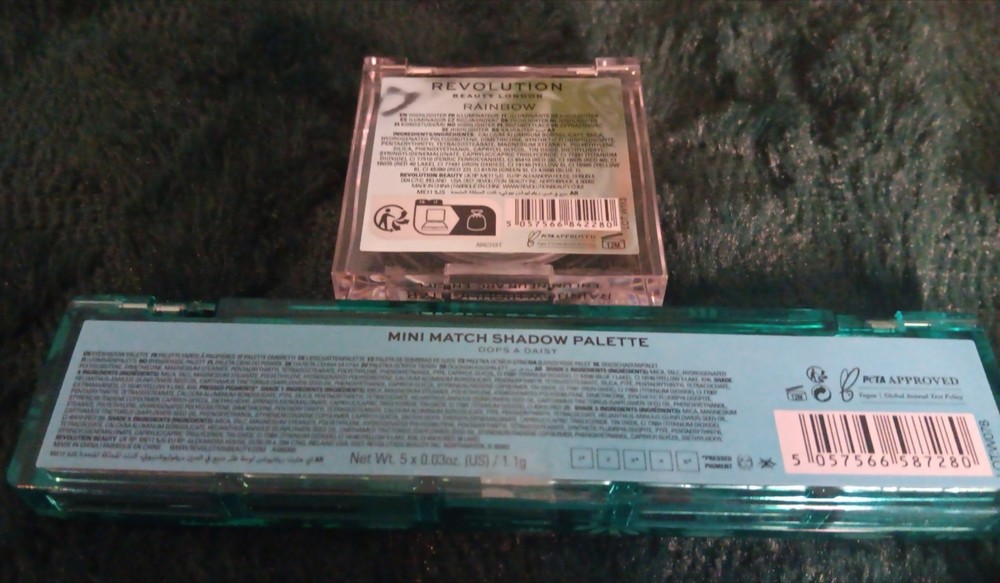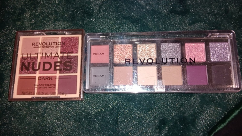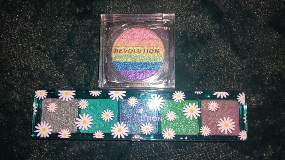 X1 revolution oops & daisy eyeshadow palette X1 revolution rainbow eyeshadow palette X1 revolution ultimate nudes dark eyeshadow palette X1 revolution metallic muse eyeshadow palette X1 revolution ultimate pigment base (blue) X1 revolution lip shake (clear sprinkles) X1 urban decay 24/7 glide on eye pencil
