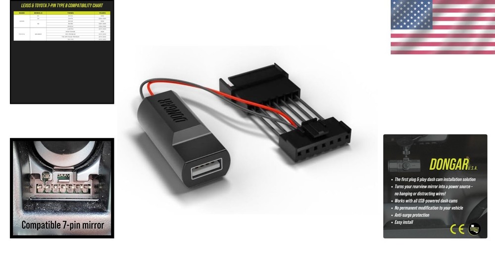 7-Pin Type B Dashcam Power Adapter for Toyota, Nissan & More - Secure Connection ‹ › ‹ › ‹ › ‹ › ‹ › ‹ › ‹ › ‹ › ‹ › ‹ › ‹ › 7-Pin Type B Dashcam Power Adapter Elevate your driving experience with our Dashcam Power Adapter, designed specifically for vehicles like Toyota, Nissan, and more. Delight in a secure connection that ensures your dash cam operates seamlessly without the hassle of permanent modifications. Key Features: FAST & EASY INSTALLATION: Enjoy a plug-and-play installation directly into your rearview mirror, ensuring no permanent modifications to your vehicle. COMPATIBILITY: Works with various USB-powered dash cams including the Garmin Mini 2, Garmin Live, Vantrue N2 Pro, and many more. ADDITIONAL USE: Ideal for radar detectors and GPS devices, enhancing your vehicle's functionality. OPTIMAL PERFORMANCE: Recommended for devices drawing less than 2A at 5V, ensuring efficient heat management for your dash cam or accessory. COMPATIBILITY LIMITATIONS: Not suitable for devices that require 12V power or powered by barrel jacks or RJ11 connectors. VEHICLE COMPATIBILITY: Fits select economy mirror models including the Toyota 4Runner (2014-2019) and various Nissan models from 2008 onwards – please refer to our compatibility chart for details. AUTO-DIMMING REQUIREMENT: Requires an auto-dimming or powered rearview mirror for optimal function. IGNITION-ACTIVATED POWER: Powers your dash cam when the vehicle's ignition is ON, preventing battery drainage. COMPLETE KIT: Comes with one dash cam power adapter and three shorty USB cables (USB-C, Mini USB, Micro USB) for versatile connectivity. Why Choose Our Dashcam Power Adapter? Take the worry out of your vehicle's dash cam installation. With our 7-Pin Type B Dashcam Power Adapter, enjoy a sleek, hidden setup that protects your battery and enhances your vehicle's safety. The simple installation process allows you to integrate your dash cam effortlessly, ensuring your driving adventures are captured without compromising your vehicle's aesthetics. Upgrade your driving security today – order your Dashcam Power Adapter now and drive with confidence! Shipping Free & Fast Shipping - We offer free shipping to most of the USA with a normal delivery time of 3-7 days. However, due to the current situation, additional delivery time (up to 3 weeks) may be required for some items. Alternative Carriers - We may use alternative carriers (e.g. USPS, FedEx, UPS, etc.) to ensure your package arrives safely and on time. Due to the use of multiple carriers, we are unable to provide a tracking number automatically. Handling Time - Orders are processed and shipped within 1-2 business days of receiving cleared payment. Shipping Restrictions - Shipping to Alaska, Hawaii, Puerto Rico, Guam, and other US territories may incur shipping charges or delivery restrictions. Please contact us before ordering, or your order can be refunded/cancelled. State Restrictions - There may be restrictions based on your state of purchase. For example, certain items may not be shipped to California due to state regulations. Contact for Tracking Updates - If you require tracking updates or have any concerns about the delivery of your order, please feel free to contact us, and we will be happy to assist you. Return 30-Day Hassle-Free Returns - We want you to be completely satisfied with your purchase. If you are not, you can return the item within 30 days of receiving it for a full refund or exchange. Easy Return Process - To start a return, simply contact us and we will provide you with a prepaid return shipping label and detailed instructions. Restocking Fee - There are no restocking fees for returns. However, the buyer is responsible for return shipping costs if the return is not due to a seller's error. Refund Processing Time - Refunds will be processed within 5 business days of receiving the returned item in its condition. Payment We accept all major credit cards, PayPal, and Apple Pay for your convenience. Your payment information is secure and encrypted to ensure a safe and seamless transaction. Please complete your payment within 3 days of purchase to avoid any delays in shipping. Feedback Your feedback is extremely important to us. We strive to provide the best products and customer service possible. If you are satisfied with your purchase, please take a moment to leave us a positive review. If you have any concerns or issues with your order, please contact us before leaving negative feedback. We are committed to resolving any problems and ensuring your satisfaction. Contact Us If you have any questions or concerns, please feel free to out to our customer support team. You can contact us through the eBay messaging system. We are available Monday to Friday, 9:00 am to 5:00 pm EST, and we will do our best to respond to your inquiry within 24 hours. Buy it now and enjoy a pleasant shopping experience! MPN: Dashcam_Power_Adapter Type: Dash Camera