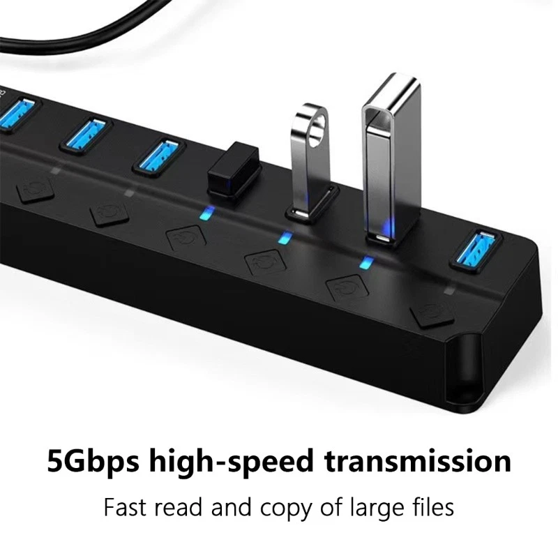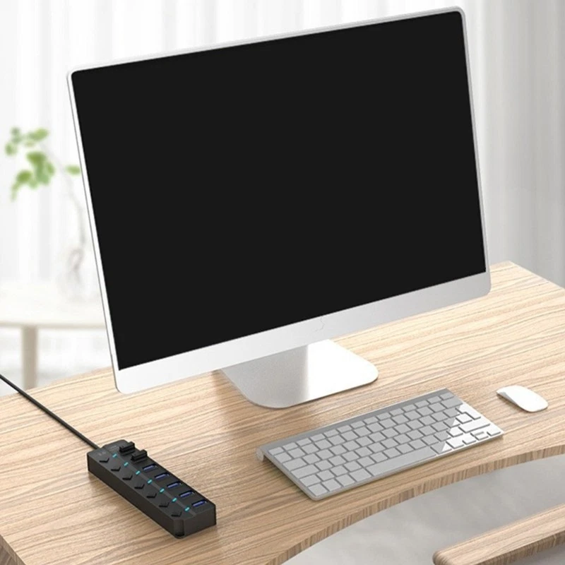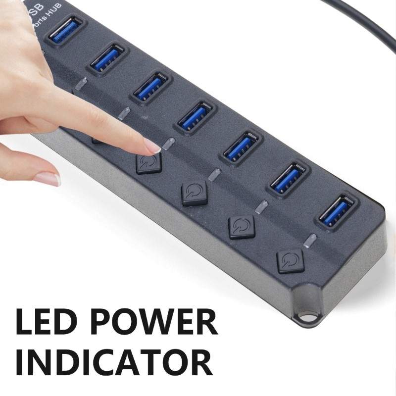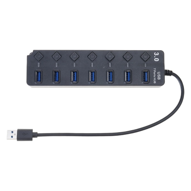 Features: Elevates your connection with 7 Port USB3.0 adapter,to expand devices USB capabilities and enhances your workflow efficiency with ease. This USB splitter features individual switches and LED indicators for each port, allowing you to manage power distribution and device connections accuracy. 7 independent buttons, can control multiple devices at the same time, convenient and quick. USB3.0 fast speed transmission, support data and charging function. For computer users who need to connect multiple USB devices, such as office workers, students, game enthusiasts and so on. Specifications: Size:about 171x46x2mm/6.73x1.8x0.82in Component:ABS Port: 7xUSB3.0 Cable length:about 30cm/11.8in Package Includes: 1PC USB3.0 Adapter note: Due to problem of light effects,there might be tolerances in product, please understand. Please allow 0-1cm error due to the measurements