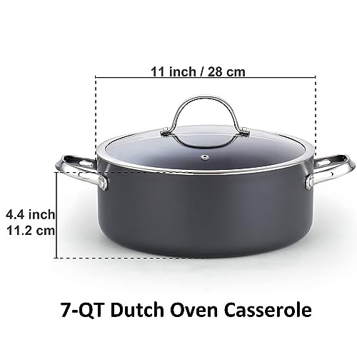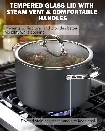 Return Policy Fast Delivery Trusted seller Stock Pot Dutch Oven Casserole with Glass Lid, 7-Quart Classic Hard Anodized Nonstick Stockpot, Black Product Description Even Heat Distribution: The nonstick Dutch oven pot is made of heavy-duty aluminum, which conducts heat quickly and evenly; This ensures uniformly heated food and better cooking results Hard Anodized Nonstick: The Hard Anodized pot is more wear-resistant than an ordinary nonstick pot; Its surface is specially treated to form a hard non-stick coating, which effectively prevents food from sticking to the bottom of the pot Multi-Purpose: The Dutch oven pot with lid is ideal for various cooking methods, including boiling, frying, and stewing; Its versatile design makes it easy to clean and a stylish addition to most kitchen Induction Incompatible: The hard anodized stockpot is suitable for gas, electric, ceramic, and glass cooktops; However, it is not compatible with induction stoves, as the aluminum bottom is not ferromagnetic and cannot be used for induction heating Glass Lid and Comfortable Handles: Tempered glass lid with steam vent to view food while cooking; Durable, comfortable, riveted stainless steel handles are wide and deep for a secure grip; Oven safe up to 500℉, glass lid up to 350℉ Shipping Returns Payment Shipping Shipping is FREE to all addresses other than APO/PO boxes in the lower 48 states. All our stock ships from US-based warehouses. Shipped via USPS or UPS (depending on location and package weight) Unless stated otherwise, all orders will ship within 24-72 hours of your payment being processed. Check our feedback to see the great reviews of FAST shipping we offer. Returns Seller does not accept returns Payment We currently accept payment via eBay managed payments only. Once payment is cleared, we will dispatch your shipment within 1-3 business days. Please refer to the "Shipping" tab for more information regarding shipping speed to your destination.