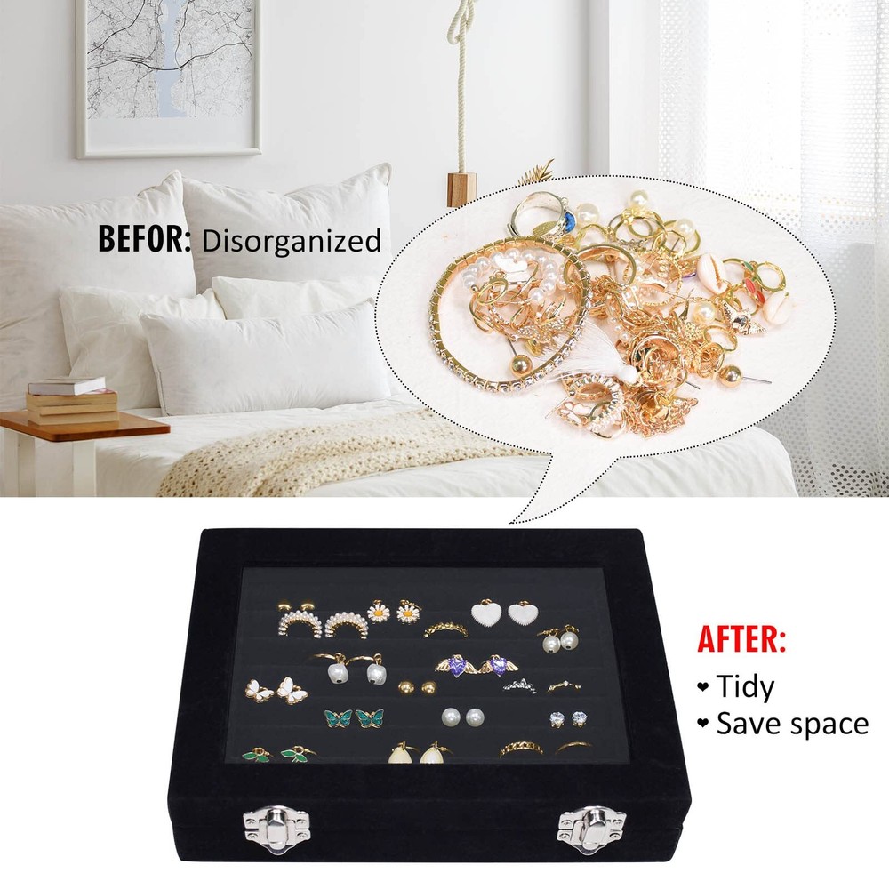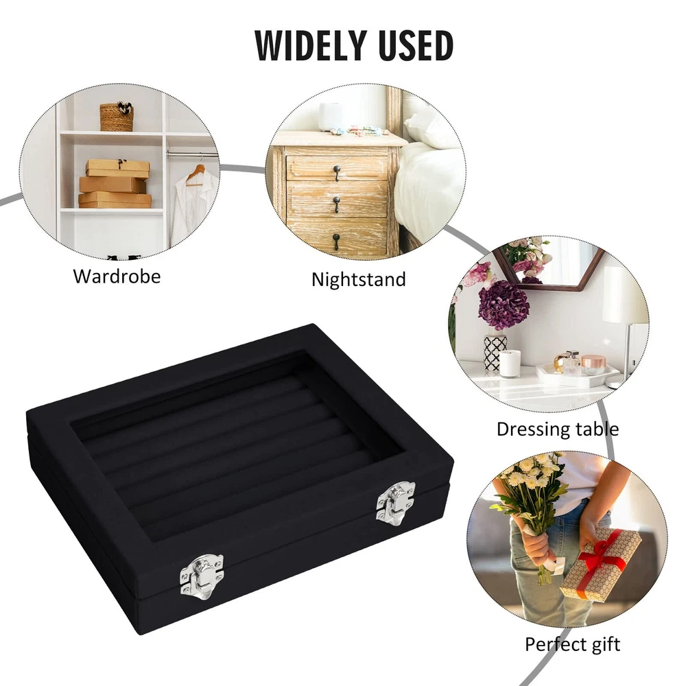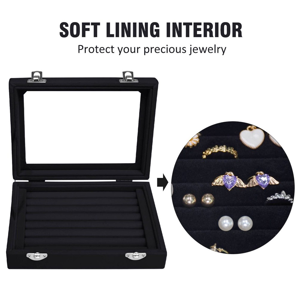 7-Slot Velvet Jewelry Organizer Tray for Rings Earrings Transparent Storage Box