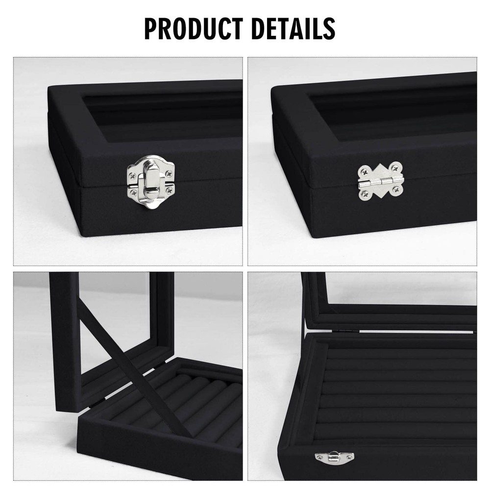 Rings Organizer Tray 7 Slots Velvet Jewelry Earring Storage Box with Transparent lid Jewelry Display Case for Girls Wife Mom Women (Black) Product features: The Victor Jewelry Display Organizer Tray is wrapped in high-quality velvet fabric, which feels very soft and comfortable. It is replaced with ordinary cardboard through durable composite boards, making the product suitable for long-term use. At the same time, it ensures that the jewelry display box can effectively protect your jewelry from scratches. Easy to carry: The size of the Vioter Jewelry Display Storage Box is 8in X 6in X 1.8in. The product is lightweight, easy to carry, easy to store, and does not take up too much space. No matter where you are, the Vioter Velvet Jewelry Storage Box helps organize your rings, earrings, brooches, and other jewelry. Focus on practicality: The lid is composed of a transparent glass lid, which can quickly discover the jewelry you are looking for through the glass. To prevent the lid from accidentally opening when carrying the jewelry display box, we have adopted a design of two locks. Extended use: The Vioter jewelry tray has 7 slots, each of which can store approximately 6 rings or earrings. You can also use it to store brooches or other jewelry, which is enough to meet your storage needs. At the same time, you can use it as a birthday, Valentine's Day, Mother's Day, or Christmas gift to give to your mother, girlfriend, wife, daughter, colleagues, friends, and so on. Focus on service: We focus on the quality of our products and just hope we can do more for you. In addition to our products, we also hope that our service can satisfy you. Please feel free to contact us at any time. Shipping We offer FREE shipping on all orders! We ship within Three business days of payment, usually sooner. We use a selection of shipping services such as UPS, FedEx, USPS etc. We only ship to the lower 48 states, no APO/FPO addresses or PO Boxes allowed. Local pickups and combined shipping options are not provided at this time. Return You can return a product for up to 30 days from the date you purchased it. Any product you return must be in the same condition you received it and in the original packaging. Please keep the receipt. Payment We accept payment by any of the following methods: PayPal Please pay as soon as possible after winning an auction, as that will allow us to post your item to you sooner! Feedback Customer satisfaction is very important to us. If you have any problem with your order, please contact us and we will do our best to make you satisfied. Contact Us If you have any queries, please contact us via ebay. We usually respond within 24 hours on weekdays. Please visit our eBay store to check out other items for sale! Thank you for shopping at our store.