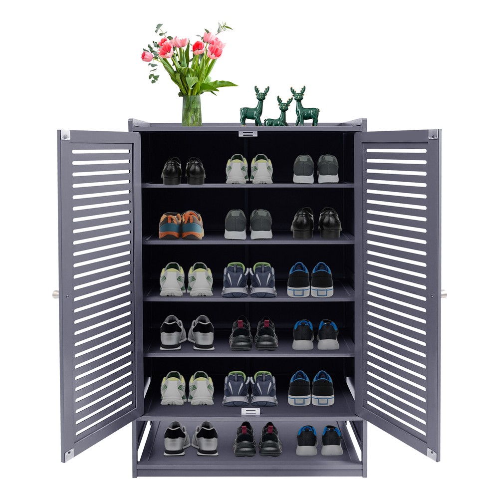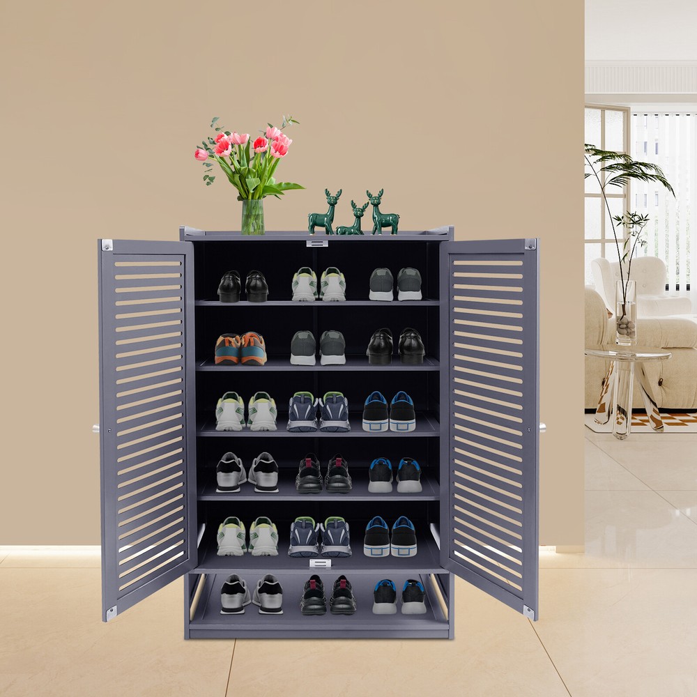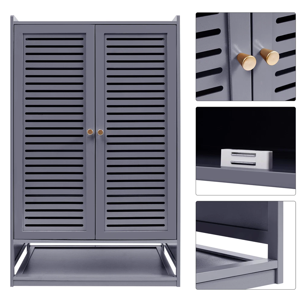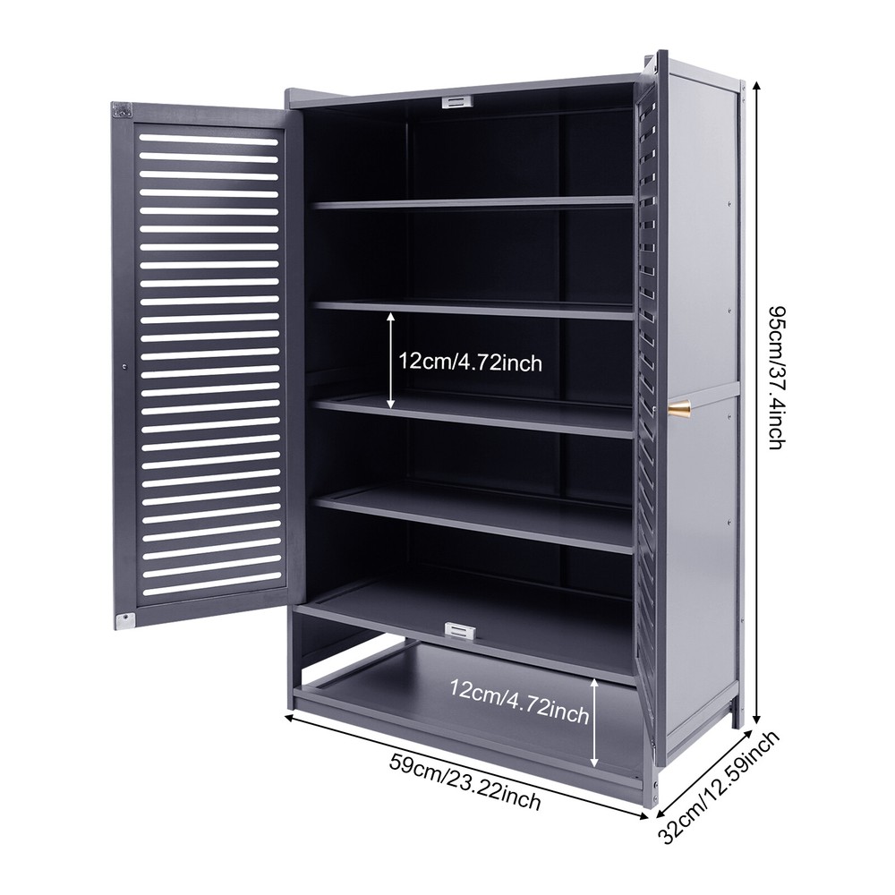 7-Tier 37.4" Tall Shoe Storage Cabinet Sneaker Organizer with Doors for Entryway Welcome~ Description With its simple and modern design concept and classic louvered door elements, this 7-tier shoe cabinet not only adds a touch of elegant color to your home but also ensures that your shoes are dry and odor-free with its good ventilation. The spacious design meets the storage needs of the whole family so that every day starts with a neat and organized trip. Key Features Eco-friendly and Durable: Made of bamboo and MDF with eco-friendly varnish sprayed on the surface, it is anti-mildew, moisture-proof, moth-proof, impact-resistant, with excellent load-bearing capacity and durability, bringing you long-term and stable service. Large Capacity: The product is designed with 6 shelves to categorize and store your shoes (about 18 pairs) and other items to meet the storage needs of the whole family. You can neatly store your daily shoes and seasonal shoes. You can also place photo frames, vases, bags, etc. on the top platform. Life Assistant: You can place this shoe cabinet in the entrance hall and use it to skillfully organize your whole family's shoes, say goodbye to a life of cluttered shoes, and return to a neat and orderly lifestyle. Strong Load Capacity: The sturdy rectangular shape and thickened material make it able to hold about 22.05 pounds on a single shelf, so you can use it without worrying about it warping or collapsing. Ventilated Design: The louvered cabinet doors effectively promote air circulation and provide a fresh and airy environment for your shoes, thus better protecting them. User Friendly: The 5.9-inch tier spacing facilitates easy access to your shoes, and the open compartments at the bottom are designed to hold your daily-worn shoes, making it easier to change them without opening the door repeatedly. Removable shelves allow you to reasonably store your high heels, sneakers, boots, and more. Beautiful and Elegant: The low-profile and elegant color, smooth lines, and simple style make the whole product beautiful and atmospheric, suitable for decorating different styles of rooms. Easy to Clean: Smooth surface and simple structure allow you to easily remove dust and residue with a wet towel (not included). Ideal Gift: Thanks to its beautiful appearance and practicality, you can give it to your friends as Christmas, Thanksgiving, or Halloween gifts. Customer Service: We aim to provide quality products and services. If you have any problems, please feel free to contact us. We will reply and solve the problem for you as soon as possible. Details Smooth Edges: The smooth and burr-free edges enhance the beauty of the product and better care for your skin when installing and cleaning it. Magnetic Doors & Practical Handles: They facilitate opening and closing cabinet doors more smoothly, allowing for quick access and shoe storage. Raised Guardrails: They effectively prevent items placed on top from accidentally falling, ensuring safer and more stable use. Application It can be placed in the living room, terrace, entrance, and bedroom for storing slippers, casual shoes, leather shoes, high heels, sneakers, boots, and so on. It can also store some other daily items such as keys, bags, decorations, coats, hats, small potted plants, toys, umbrellas, and so on. Specification Mount Type: Floorstanding Assembly Required: Yes Number of Tiers: 7 Each Tier Load-capacity: About 10kg/22.05 lbs Material: Bamboo, MDF Process: Eco-friendly Varnish Sprayed Shape: Rectangular Style: Modern Color: Gray Accommodate Shoes: Around 18 Pairs(For Reference Only) Tier Spacing: 15cm/5.9in Product Size: 59*32*95cm/23.22*12.59*37.4in Package Size: 113*33*16.5cm/44.49*12.99*6.5in Gross Weight: 12.5kg/27.56lbs Net Weight: 11.88kg/26.19lbs Package Included 1* Shoe Cabinet 1* Chinese Installation Manual Other Mounting Accessories Notes Please check the style and size before purchasing. Please do not place items that exceed the maximum load capacity of the product. Please note that this item does not include shoes as well as other items. Please allow the slight color difference caused by the shooting light and 1-3cm error due to manual measurement and make sure you do not mind before ordering. Payment Delivery details Terms of sales About us Contact us Payment We accept ebay payment 。 Fees such as import duties, taxes are not included in the item price or shipping costs. These charges are the buyer's responsibility. Delivery details Shipping: 2-9 working days to: USA Terms of sales We maintain high standards of excellence and strive for hundred percent customer satisfaction. Feedback is very important to us. We hope that you contact us immediately before you give neutral or negative feedback, so that we can address your concerns. It is impossible to address issues if we do not know about them! About us Your satis faction is our ultimate goal. We work hard to earn your trust and future business. Our certified technicians have tested each item before shipping. The unit comes with 1 year limited warranty on all manufacturing defects. a) If you receive a defective item, you may return it or ask for a discount. Please contact us within 14 days after you receive the package. b) What you returned must be intact and in its original packaging as re? u. Customer is responsible for shipping costs of the returned item. c) We will cover the cost of shipping back t with the shipping rate indicated in the registration page. We will send you a new unit or refund the full payment you paid. Thank you. Contact us Business Hour Business Hour: Monday To Friday: 8:30 AM to 5:00 PM (Beijing China time) Due to time zones, our reply to your questions may not be immediately. But within above working time, we will reply your email within 24 hours. If it's non-workdays, please kindly be patient and wait till Monday. Please contact us with ebay message. Please feel free to contact us if you have any questions. Monday To Friday: 8:30 AM to 