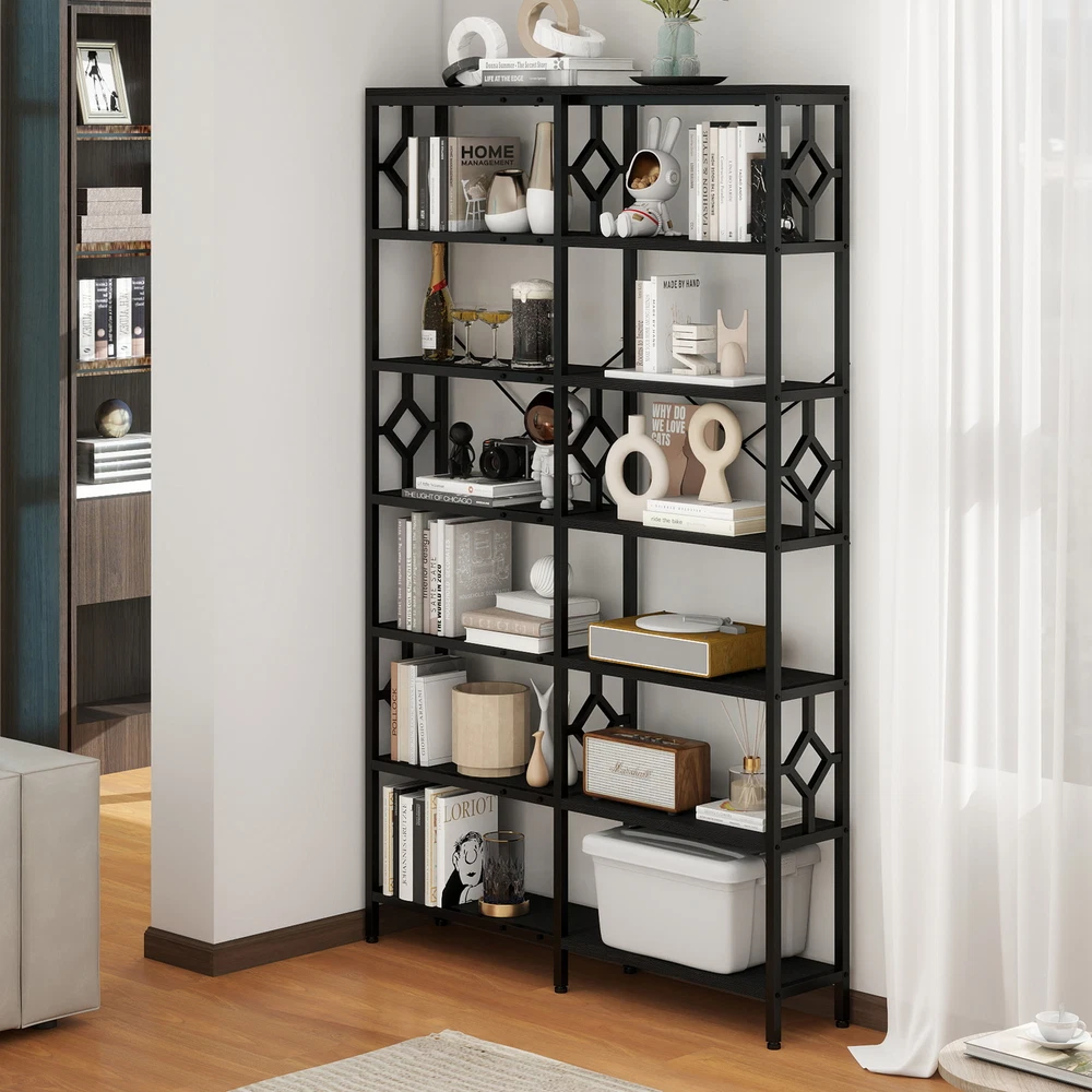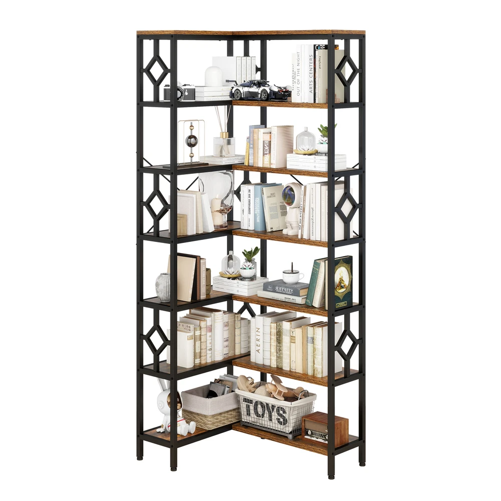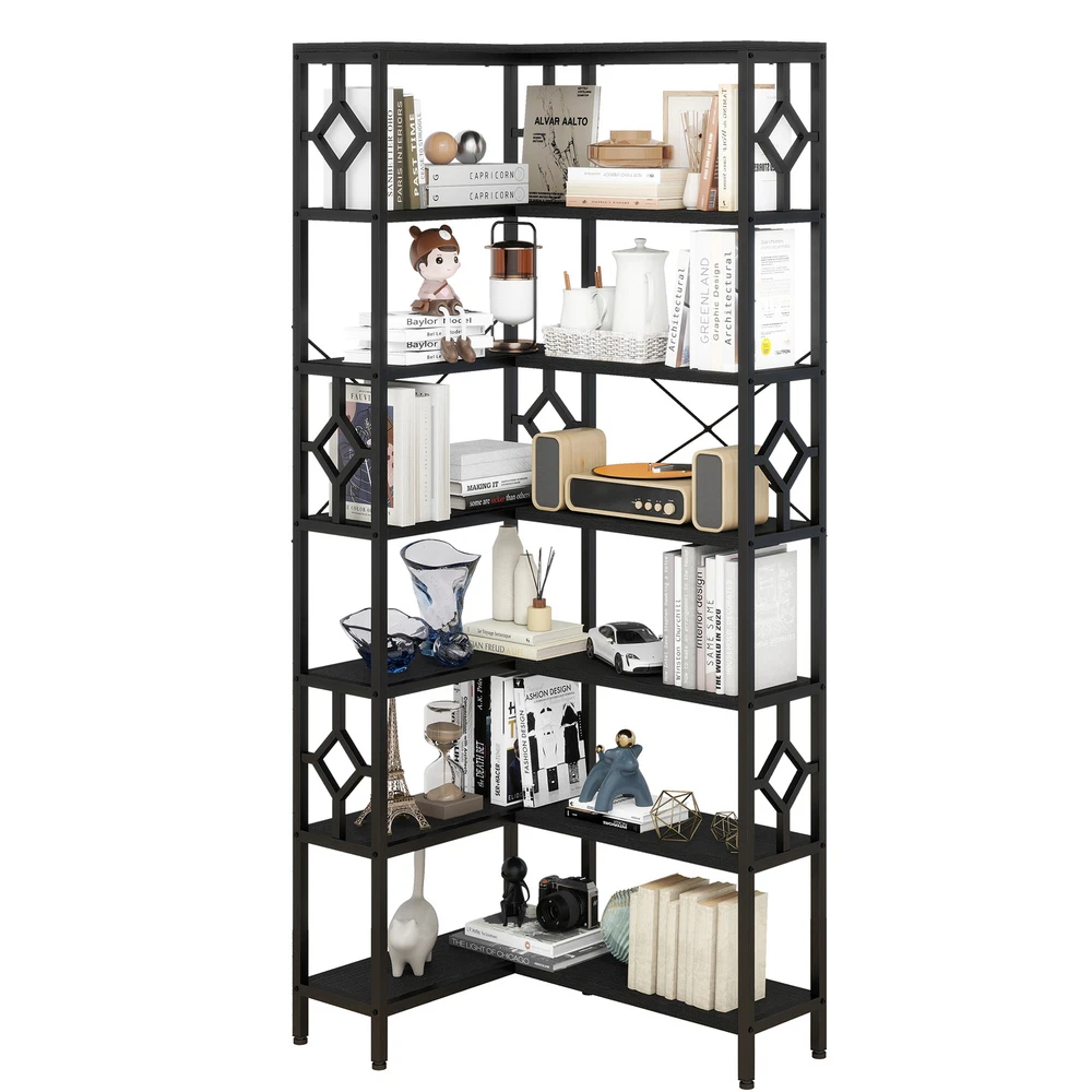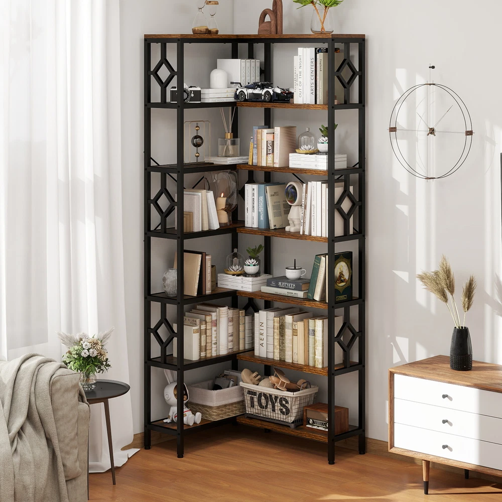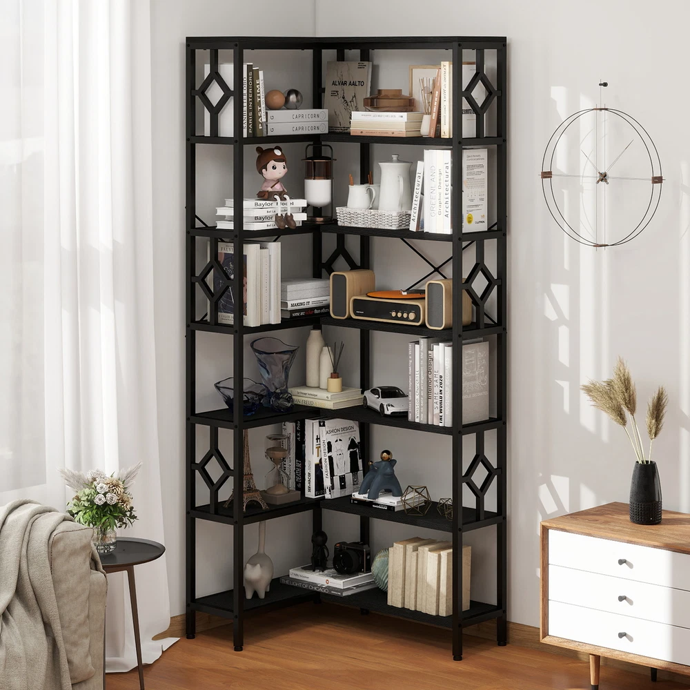 7-Tier Corner Bookshelf Industrial Bookcase Storage Display Rack for Home Office