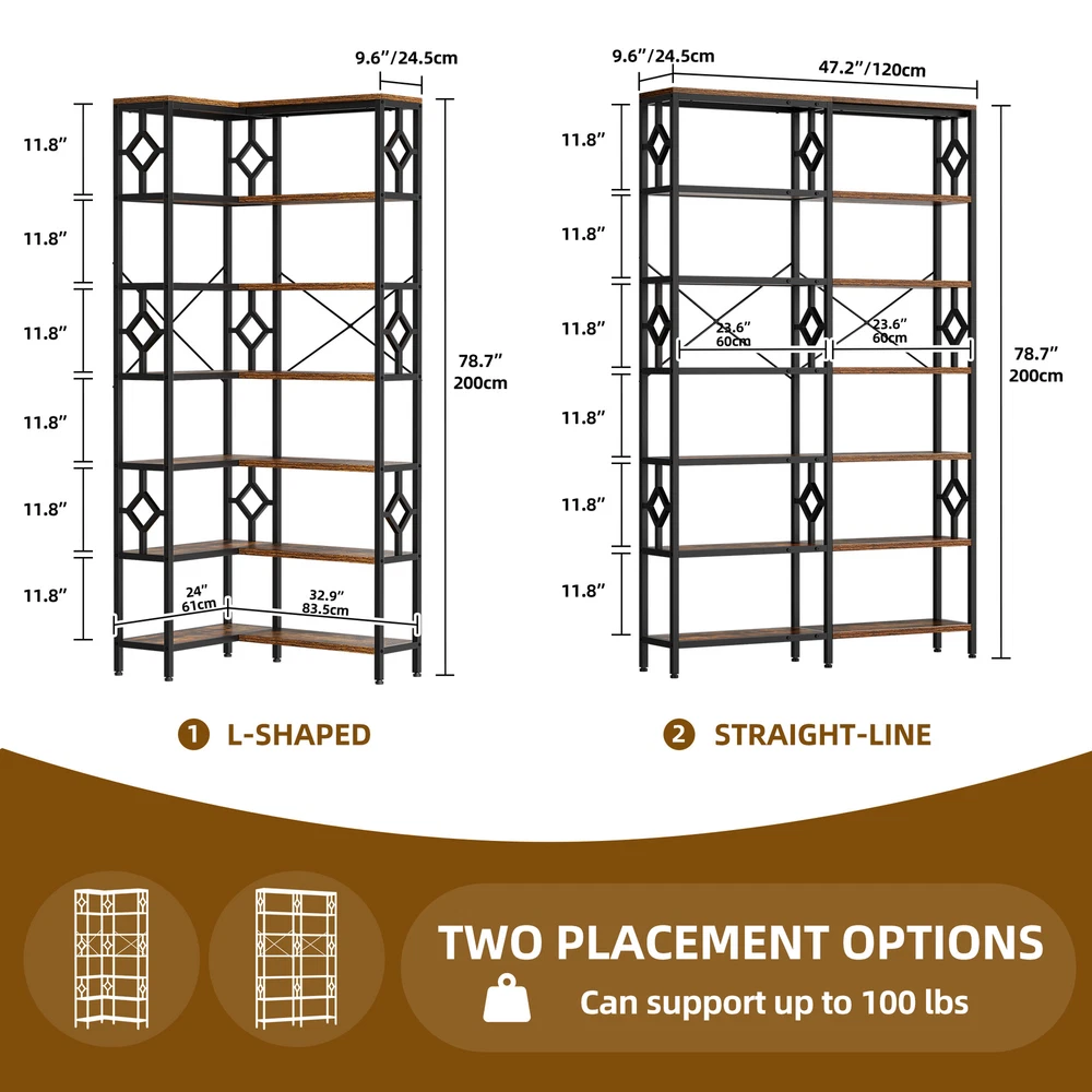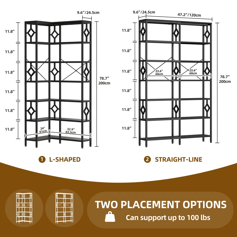 Featured types you may look for Bookcase Bookcase Bookcase Corner Shelf 7-Tier Corner Bookshelf Industrial Bookcase Storage Display Rack for Home Office Item Description: Features: 1. Maximized Corner Space: This corner bookshelf is designed to efficiently utilize the often-underutilized corner space in your home or office, allowing you to maximize your available storage without taking up valuable floor area. 2. 7-Tier Storage Capacity: With its impressive 7-tier shelving system, this bookcase offers ample storage and display space for your books, decorative items, plants, and various other accessories. 3. Industrial-Inspired Design: Featuring a metal frame and rustic wood shelves, this bookcase boasts an industrial-chic aesthetic that seamlessly blends modern and vintage elements, making it a stylish addition to your decor. 4. Sturdy Construction: Crafted with durable steel and high-quality wood materials, this bookcase is built to withstand the demands of everyday use, ensuring long-lasting stability and reliable performance. 5. Adjustable Shelves: The shelves can be adjusted to accommodate items of different sizes, allowing you to customize the storage space to suit your specific needs and preferences. 6. Versatile Placement: While designed as a corner bookcase, this unit can also be placed against a wall or in any other suitable location in your home or office, providing you with flexible placement options. 7. Easy Assembly: With a straightforward assembly process, this bookcase can be quickly and easily set up, saving you time and effort during the installation. 8. Multifunctional Usage: In addition to serving as a bookcase, this versatile unit can also be used as a display stand for your favorite decor pieces, plants, or collectibles, making it a valuable addition to any room. 9. Space-Saving Design: The compact and efficient corner design of this bookcase allows you to maximize your available floor space while providing ample storage solutions. 10. Complementary Aesthetic: The industrial-inspired style of this bookcase seamlessly complements a variety of interior design themes, from modern farmhouse to urban-chic, allowing it to blend seamlessly into your existing decor. Specifications: Color: Rustic Brown, Black Material: Engineered Wood Size: 23.6"D x 23.6"W x 78.7"H Item Weight: ‎81.6 Pounds Installation Type: Freestanding Room Type: Office, Living Room, Library, Study Room Assembly Required:Yes Material: Particle Board; Steel Frame Package Included: 1 x Bookshelf 1 x Bag of Fittings 1 x Instruction Manual Notes: 1. Assemble according to the instruction manual. 2. After receiving the package, first confirm that all pieces are included as per the instruction manual. 3. Do not tighten screws too hard when assembling. Firmly tighten only after the entire structure has been constructed. More Display: Shipping ● The shipping rates listed are only for residential or commercial destinations in the continental 48 United States. All international sales will go through eBay Global Shipping Program.please ask us if there are any questions. ● We only ship the item to the address that is sent to us at the time of checkout. Please verify the correct shipping address in your PayPal account before making your payment. If we ship your item to an old or invalid address and you are not able to locate the item, we are not responsible for shipping a replacement. ● Currently, we do not ship to Hawaii, Alaska, Puerto Rico,APO/FPO/PO Boxes. ● We use USPS, UPS & FedEx as shipping method. ● Payments cleared before 12 PM PST, will be shipped on the same day. Payment ● We accept PayPal and all forms of credit card. ● We will only ship to the confirmed Paypal shipping address given with the payment. ● We do not offer local pick up service. Return ● 30 days Money Back Guarantee. ● If any package that needs to be returned, please contact our customer service first to receive a RMA form. ● All return items MUST be in brand new condition. About Us ● Specialized in aftermarket auto parts since 2012, we source and work directly with professional manufacturers to provide the highest quality parts at the most economical prices. ● We also has over 5 years of shipping experience with FedEx and USPS . Our Packing Quality is Guaranteed , Item Ship-ping is timely!
