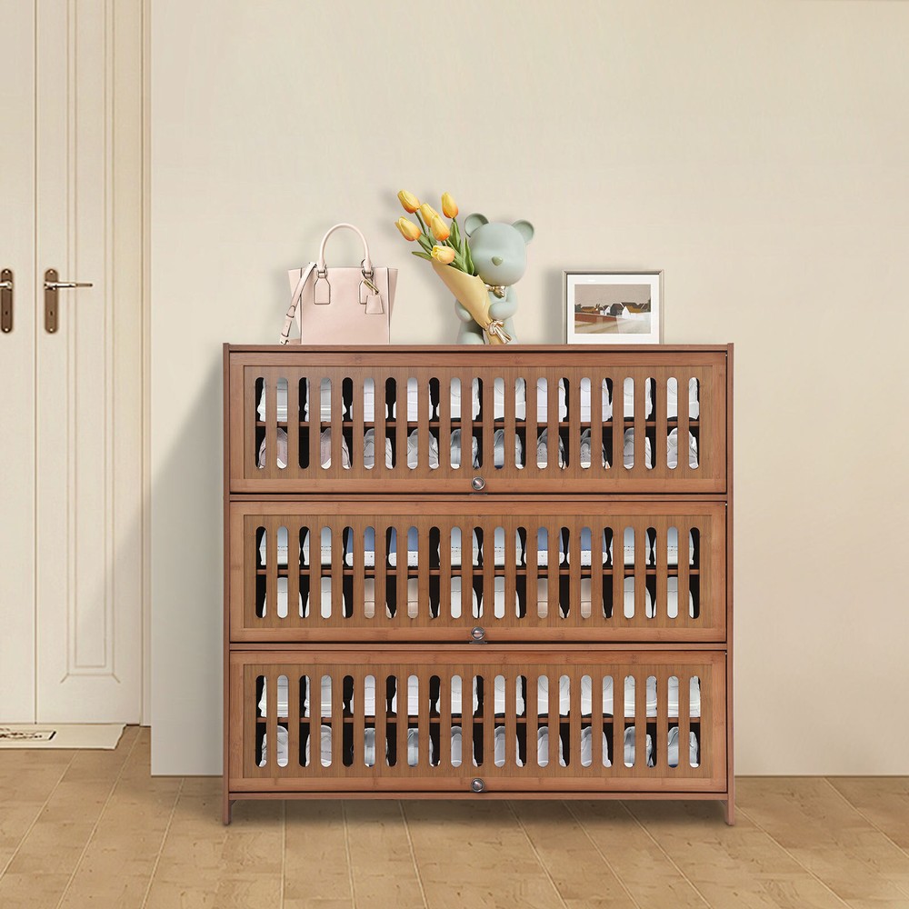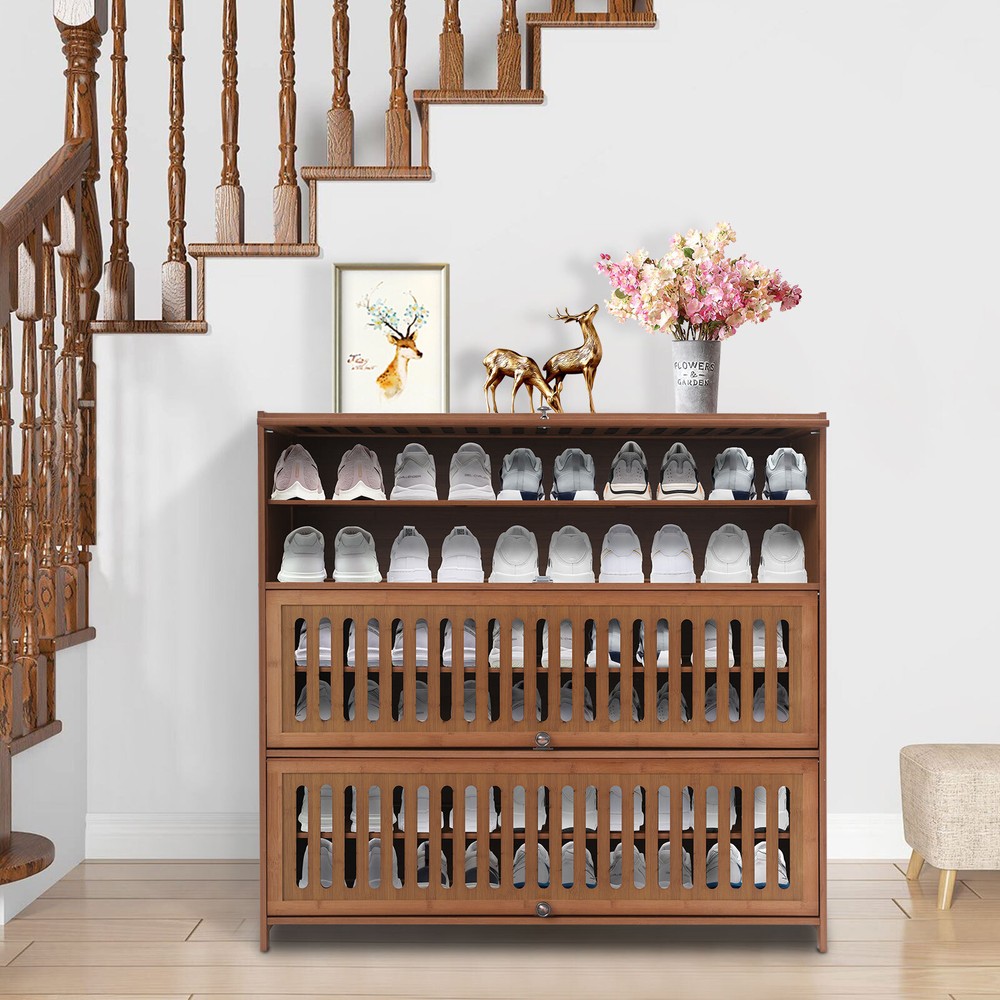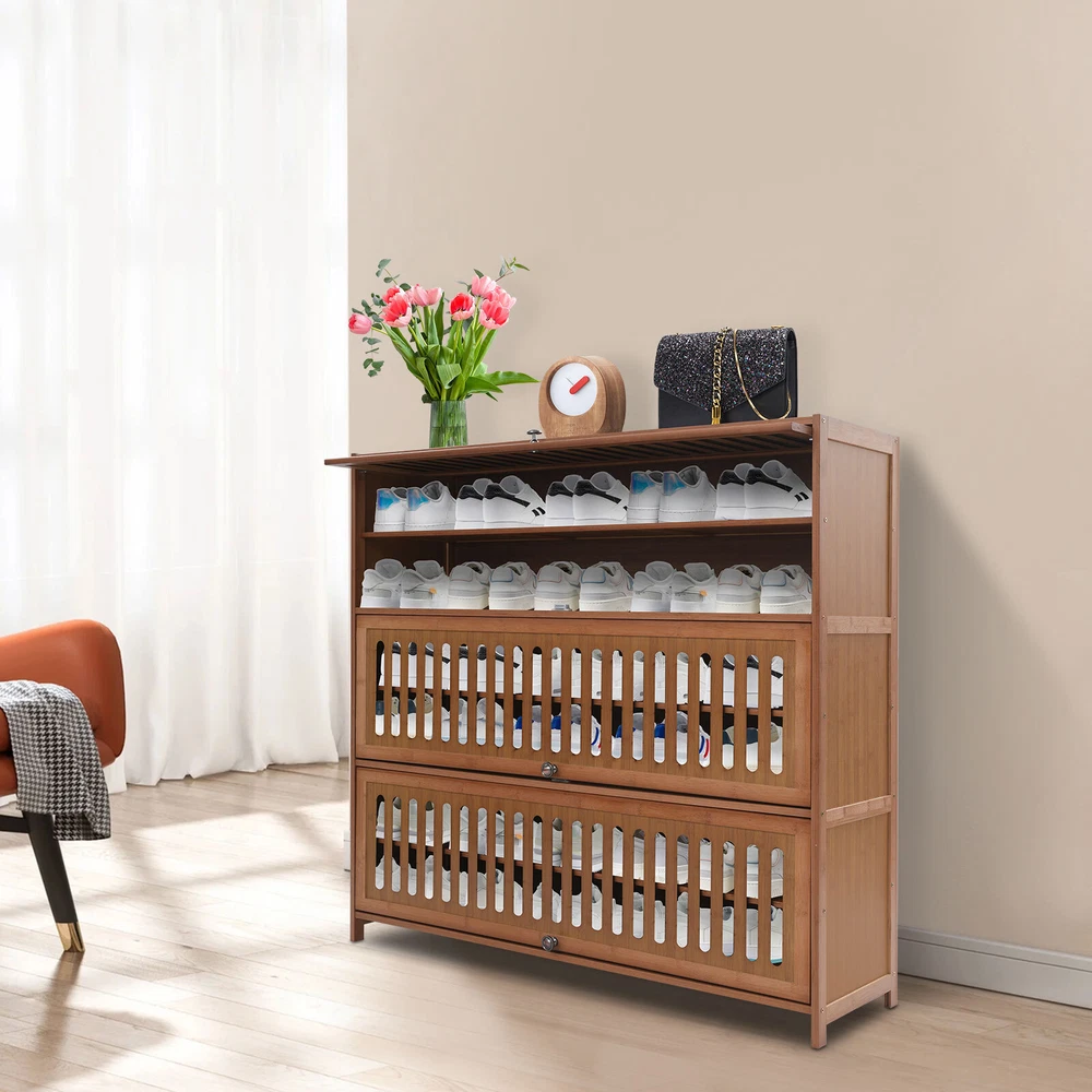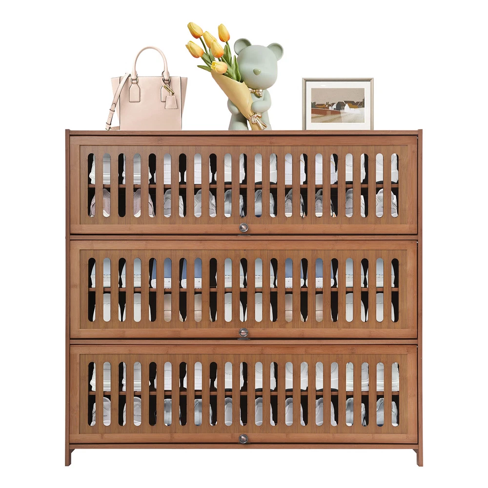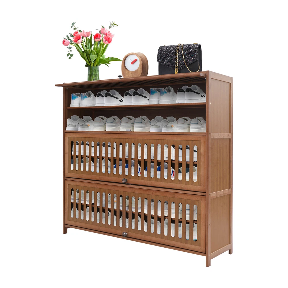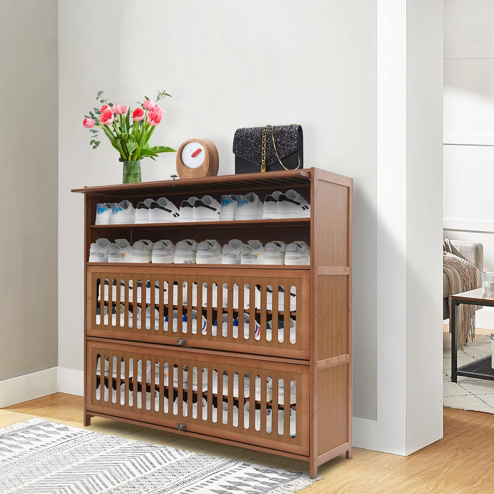 This shoe cabinet is a game-changer for small spaces! The flip-up doors save room while keeping shoes neatly organized. Sturdy bamboo construction holds up well, and the modern tawny finish looks chic. Easy to assemble, and the 7 tiers fit plenty of pairs without taking up much floor space. Perfect for keeping entryways clutter-free—love how it maximizes storage while staying sleek!