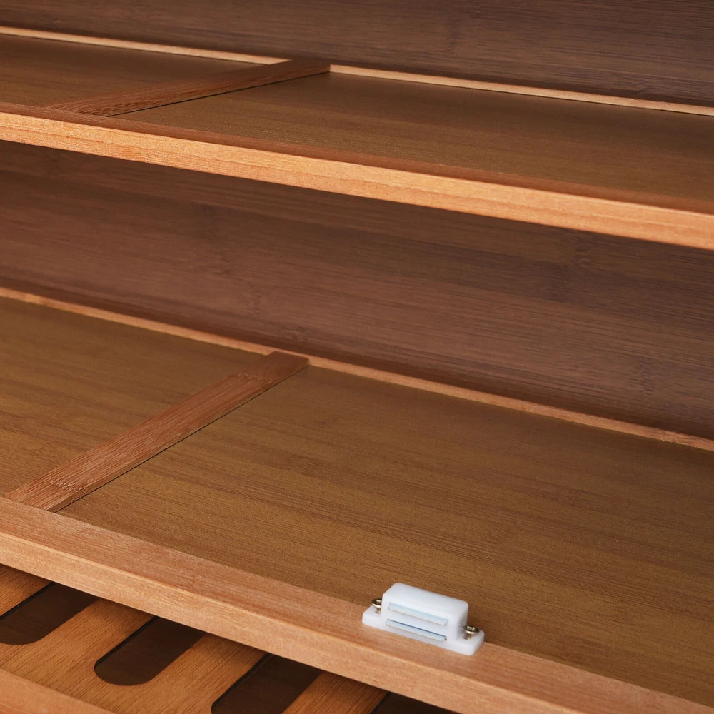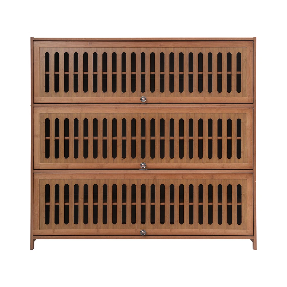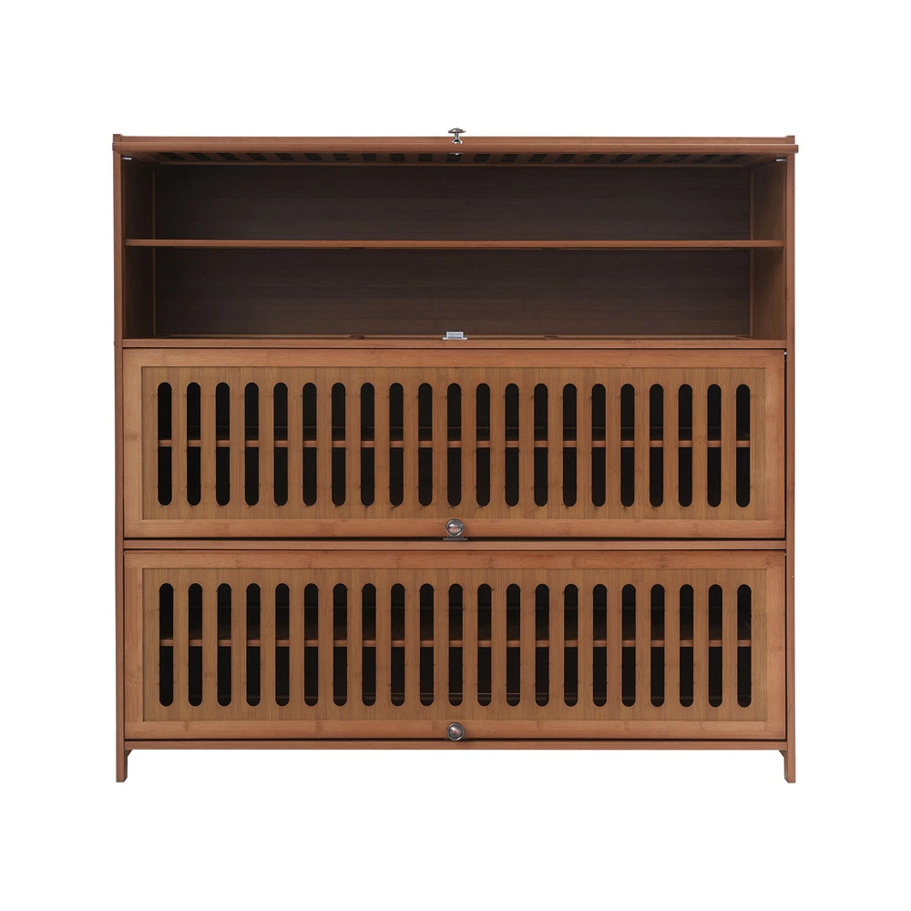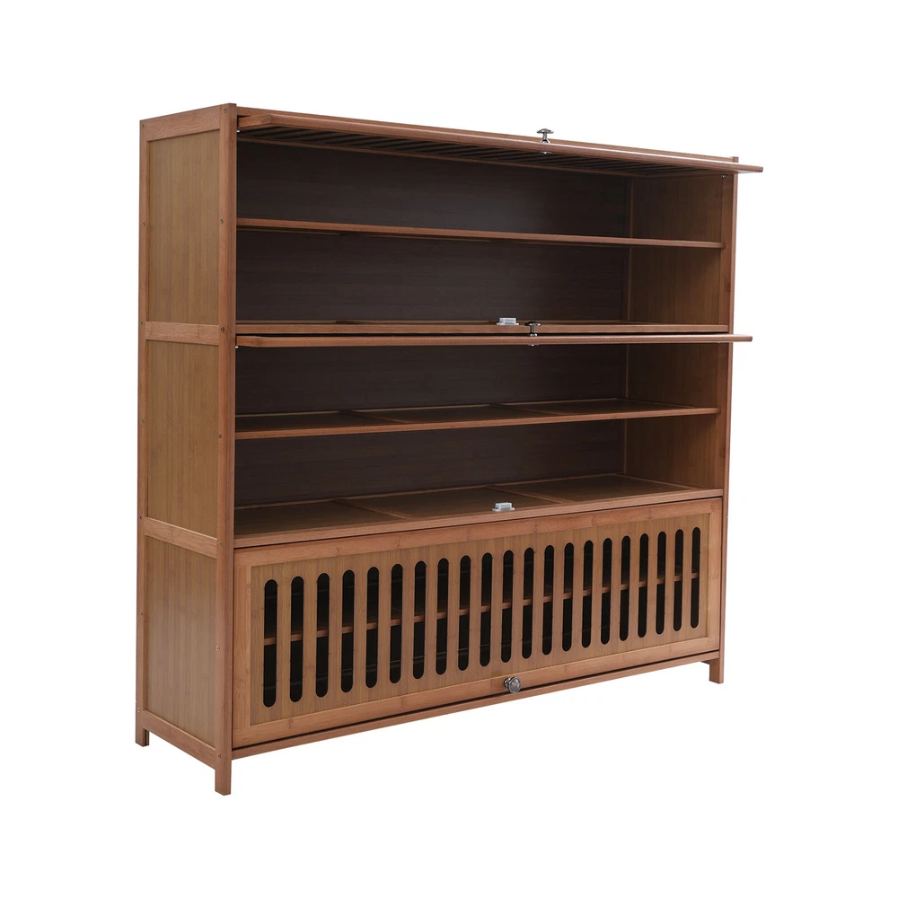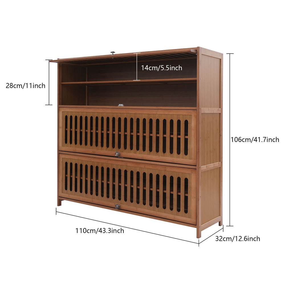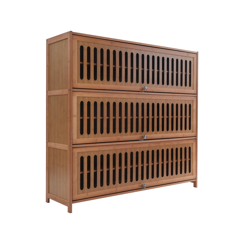 This shoe cabinet is a game-changer for small spaces! The flip-up doors save room while keeping shoes neatly organized. Sturdy bamboo construction holds up well, and the modern tawny finish looks chic. Easy to assemble, and the 7 tiers fit plenty of pairs without taking up much floor space. Perfect for keeping entryways clutter-free—love how it maximizes storage while staying sleek!