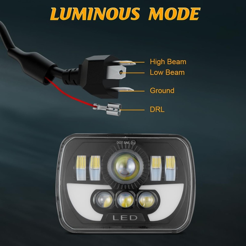 Package included: 1PC 5X7" 7x6" inch Halo LED Headlight Black 1PC H4 9003 HB2 adapter harness Features: 1. Popualr Best 7X6 5x7 inch led headlight in the market. High Performance led chips, much brighter and durable than other headlights. 6000K Pure white light. 2. DOT, SAE, IP67 Approved. The cutoff is very shrill and straight. It won\\\\\\\\\\\\\\\\\\\\\\\\\\\\\\\\'t blind other drivers like other headlights. 3. Better Visibility: 6800 High Beam, 3000LM Low beam, High Brightness Helps to reduce traffic accidents cause by bad weather or bad road condition. Ensure driver\\\\\\\\\\\\\\\\\\\\\\\\\\\\\\\\'s safety. 4. Three Light Mode: High Beam, Low Beam, White Halo Ring Angel Eye DRL. With Pure PC Lens and Aluminum Alloy Housing, super bright and good heat disspation, longer lifetime. 5. Easy to Install: Standard H4 socket, Just Plug and Play, connect the extend DRL wire with your car\\\\\\\\\\\\\\\\\\\\\\\\\\\\\\\\'s ACC. The anti-flicker is integrated with circuit board. Perfectly avoid flickering. 6. Offer 5 Year Warranty! Specifications: 1. Led Chip: Advanced led chips 2. LED Color: 6000K White 3. Bezel Color: Black 4. Power: 120W; With White Halo DRL 5. Size: 7x6" inch (Also Known as 5x7" inch ) 6. Voltage: DC 9V~32V 7. Luminous Flux: 8000LM high beam, 4800LM low beam 8.Lens Material: Clear PC Lens 9.Material:Diecast aluminum housing 10.Average Life span more than 80,000 hours of usage 11.Plug: Standard H4 plug with high / low beam/ DRL function 12.With EMC Function and DOT,E9 Approved 13.Waterproof: IP67 14.Simple installation: Plug N\\\\\\\\\\\\\\\\\\\\\\\\\\\\\\\\' Play 15.Warranty: 5 Year Applications: Fit but not limited: Any other car H6054 H6014 H6054LL 69822 6052 6053 with 5"x7" or 7"x6" Rectangular Headlight Fit For any Vehicle with 5x7 inches (also known as 7x6) Headlights ,such as: Fit For Jeep Wrangler YJ 1987-1995 Fit For Jeep Cherokee XJ 1984-2001 Fit For Jeep Comanche MJ 1986-1992 Fit For GMC Savana 3500 1998-2002, 2004, 2007, 2009-2012 Fit For GMC Savana 2500 1998-2001, 2004, 2006, 2008, 2010-2012 Fit For GMC Savana 1500 1998-2001, 2003, 2005, 2007, 2009-2012 Fit For GMC Safari 1998-2002, 2004, 2005 Fit For GMC K3500 1997-2000 Fit For GMC K2500 Suburban 1997-1999 Fit For GMC K2500 1997-2000 Fit For GMC K1500 Suburban 1997-1999 Fit For GMC K1500 1997-1999 Fit For GMC C2500 Suburban 1997-1999 Fit For GMC C2500 1997-2000 Fit For GMC C1500 Suburban 1997-1999 Fit For GMC C1500 1997-1999 Fit For Ford F-550 Super Duty, F-450 Super Duty, F-350 Super Duty, Fit For Ford F-250 Super Duty, F-250, F-150, E-450 Super Duty, Fit For Ford E-350 Super Duty, E-350 Econoline Club Wagon, E-350 Econoline Fit For Ford E-350 Club Wagon,E-250, E-150 Econoline Club Wagon, Fit For Ford E-150 Econoline, E-150 Fit For Chevrolet Express 3500, For Chevrolet Express 2500, For Chevrolet Express 1500, For Chevrolet Astro Fit For Chevy S10 Pickup 82-94 for Chevrolet Tahoe S10 Blazer S10 K2500 Suburban K1500 Suburban Express For 1988-1990 For Dodge Ramcharger For 1990-1993 For Dodge Ram Pickup For 1990-1993 For Dodge W250 For 1986-1993 For Dodge Van For 1985-1987 For Chevy Silverado For Dodge Ram 50, For Dodge Omni, For Dodge Colt, For Dodge Caravan, For Dodge Aries Fit For Toyota Pickup 1986-1992, For Tacoma, For MR2, For Celica,For S-upra, For 240SX, Some cars for toyota will need change the pins,package inculde conversion adapter harness, for tacoma and pickup will need purchase extra relay, package not include, kindly vistor our store to purchase).