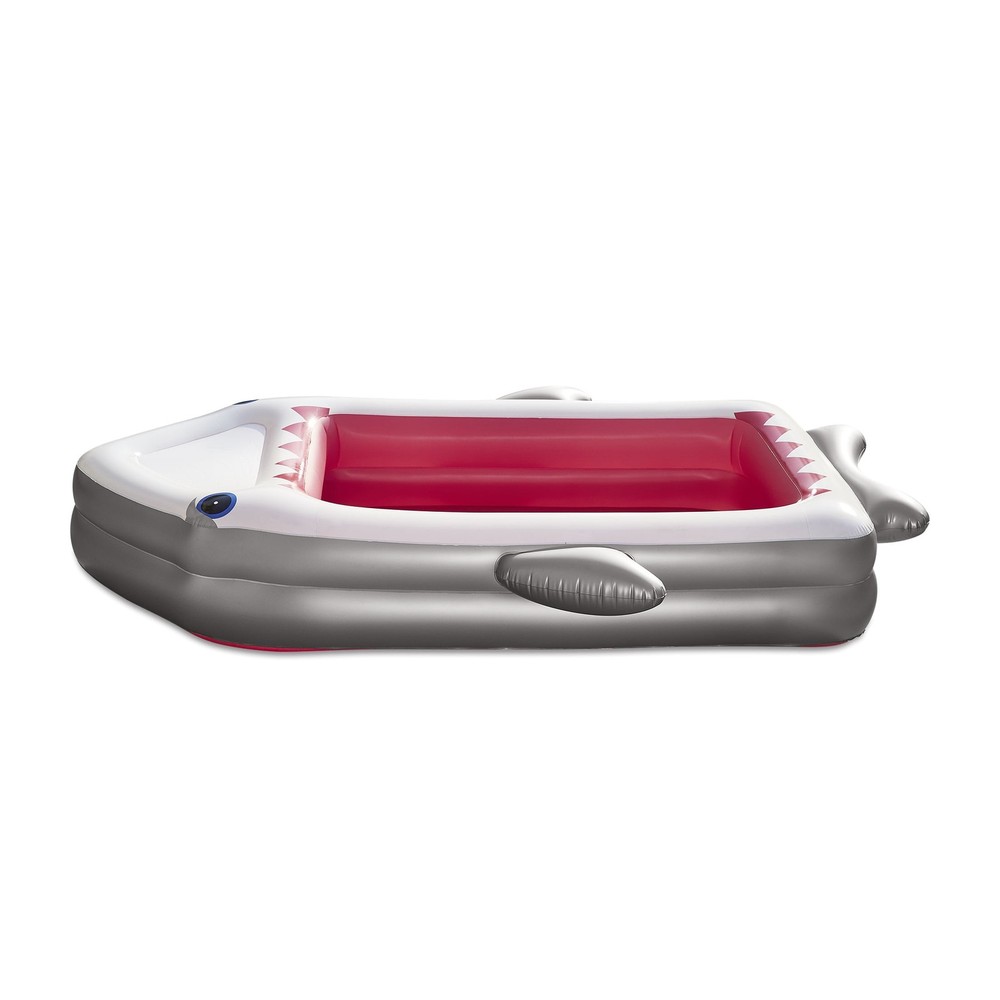 Product details Swim in the jaws of a shark in this hilarious Summer Waves Rectangular Inflatable Shark Family Pool. This rectangular pool features a shark jaw design made from puncture-resistant PVC materials. Its two-tier construction and efficient two-in-one valve make setup quick and easy. Plus, a convenient drain plug is included for easy draining. Just fill the Summer Waves Rectangular Inflatable Shark Family Pool with water, and splash around inside the jaws of this ocean friend. Summer Waves Rectangular Inflatable Shark Family Pool, Gray, Ages 3 and Up, Unisex: Inflatable 2-tier rectangular pool Hilarious shark jaw design 2-in-1 valve for easy inflation/deflation Durably made from puncture-resistant materials Includes drain plug for easy drainage of water Repair patch included Approximate deflated size: 116" x 71" (2.95 m x 1.80 m) Approximate inflated size: 120" x 72" x 18" (3.05 m x 1.83 m x 46 cm) Age: 3+