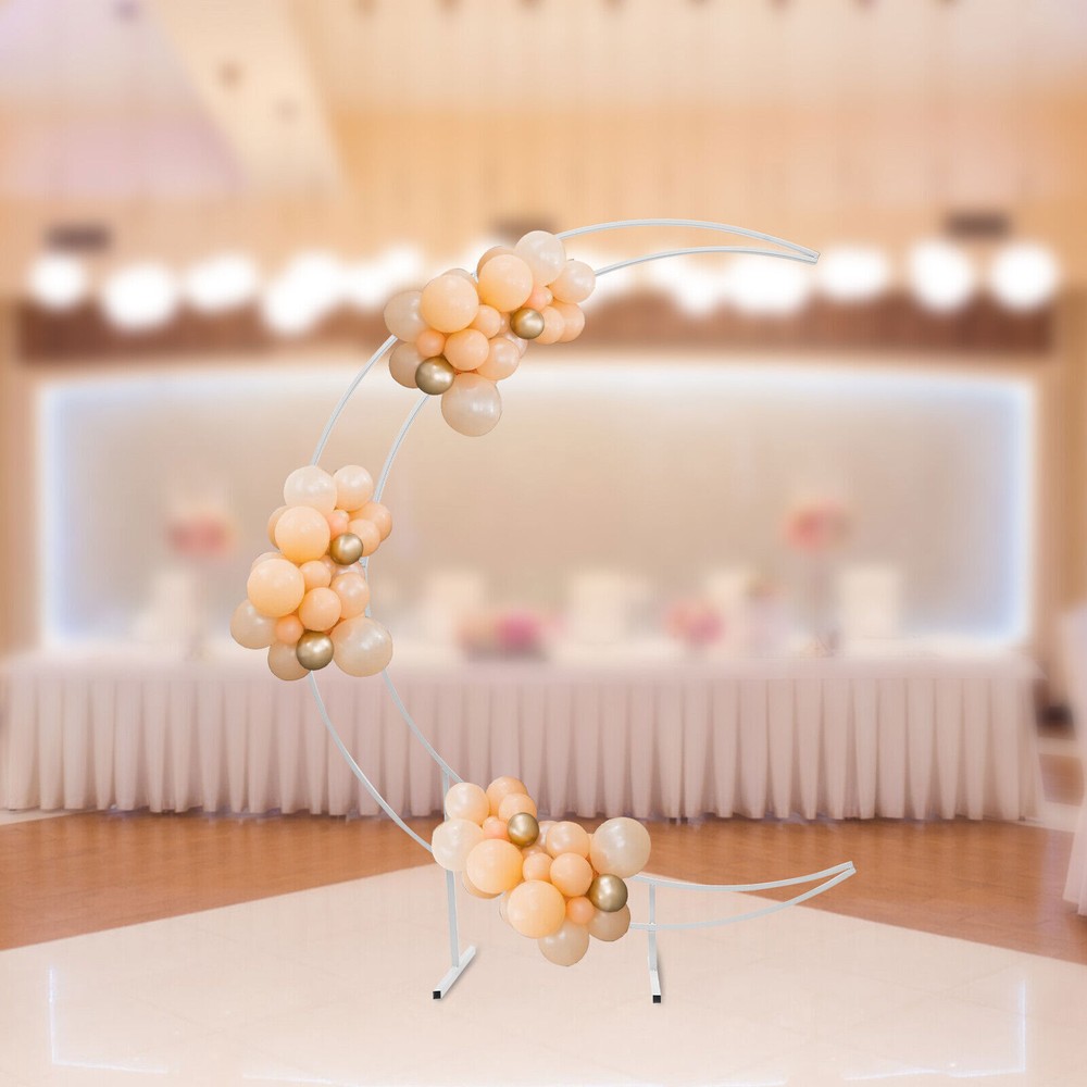 Absolutely love this stunning crescent moon arch! The sturdy carbon steel frame feels premium, and the white finish adds elegance. Assembly was straightforward with the clear instructions, and the 7ft height makes a dramatic statement. Held our balloon garlands perfectly without wobbling—ideal for weddings or photo backdrops. Lightweight yet stable, and the curved design looks magical. Worth every penny for transforming our event space!